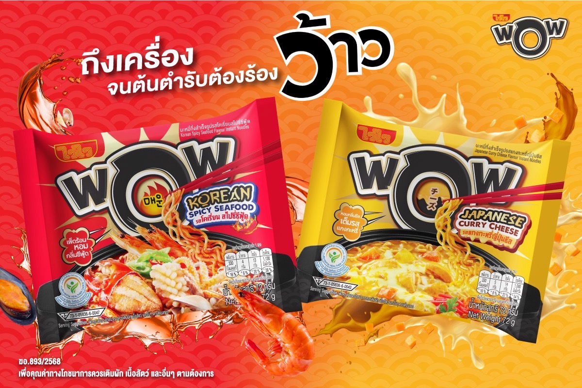 ไวไว เดินเกมรุกตลาดบะหมี่กึ่งสำเร็จรูป 30,000 ล้าน เปิดตัว ‘Waiwai WOW’ สินค้ากลุ่มพรีเมียมเขย่าบัลลังก์เจ้าตลาด ชูกลยุทธ์ราคาเข้าถึงได้ เพียงซองละ 11 บาท หลังพฤติกรรมผู้บริโภคให้การยอมรับสินค้าพรีเมียม ประเดิมส่ง 2 รสชาติเกาหลี-ญี่ปุ่น “รสโคเรี่ยน สไปซี่ซีฟู้ดและรสแกงกะหรี่ญี่ปุ่นชีส” เสิร์ฟความอร่อยจากเส้นและซุปที่มีรสชาติเข้มข้น เจาะกลุ่มลูกค้าวัยรุ่น คาดกวาดยอดขายปีแรก 300 ล้าน ในตลาดรวม Premium ที่มีสัดส่วน 10-15% หรือประมาณ 3,000-4,500 ล้าน พร้อมตั้งเป้า 3 ปีโกยแชร์ 25%