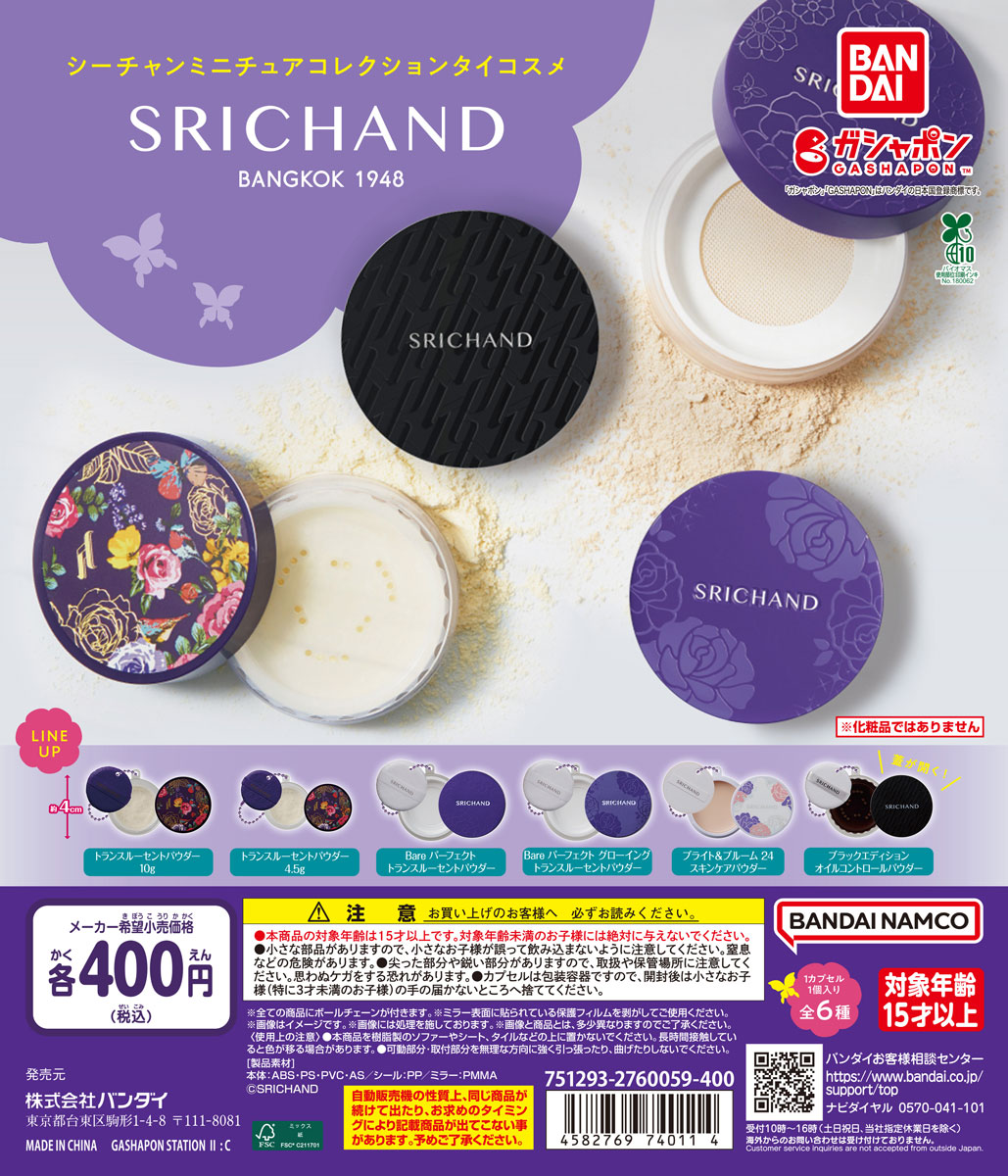 ทำให้ BANDAI บริษัทผลิตของเล่นจากประเทศญี่ปุ่นขอซื้อลิขสิทธิ์ของตัวแป้ง เพื่อนำไปทำเป็นกาชาปอง โดยเลือกจากแป้งที่จำหน่ายในประเทศญี่ปุ่นทั้ง 6 แบบ