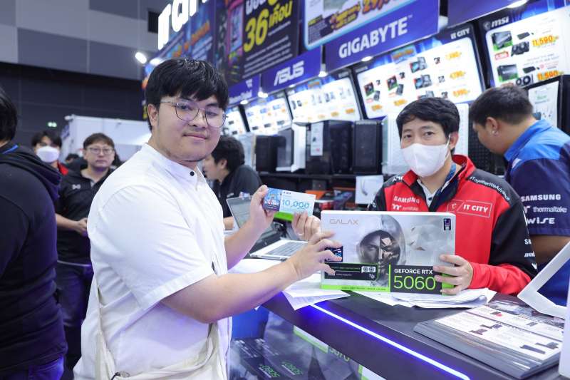 สินค้าขายดีในงาน COMMART UNLIMIT 2025 โน้ตบุ๊ก ยังคงเป็นสินค้าหลักที่ได้รับความนิยมสูงสุด คิดเป็น 39% ของยอดขายรวม เนื่องจากตอบโจทย์การใช้งานทั้งเรียน ทำงาน เล่นเกม และส่วนใหญ่มีฟีเจอร์ AI ในตัว ด้านคอมพิวเตอร์ประกอบ (DIY) ได้รับความนิยมจากกลุ่มเกมเมอร์และผู้ใช้งานสายคัสตอม เป็นอันดับรองลงมาคิดเป็น 28% ของยอดขาย อุปกรณ์แกดเจ็ต (Gadget) อาทิ หูฟัง สมาร์ตวอช กล้อง และอุปกรณ์เสริมต่าง ๆ คิดเป็น 16% สมาร์ทโฟน ยังได้รับความนิยมต่อเนื่อง คิดเป็น 10% และจอมอนิเตอร์และอุปกรณ์เสริม เช่น เมาส์ คีย์บอร์ด สายชาร์จ คิดเป็น 7% แบรนด์ยอดนิยมในงาน ได้แก่ Acer / AMD / Apple / Asus / HP / Intel / Lenovo / MSI ร้านค้าขายดี ได้แก่ Banana / IT CITY / JIB / Speed / SPVi