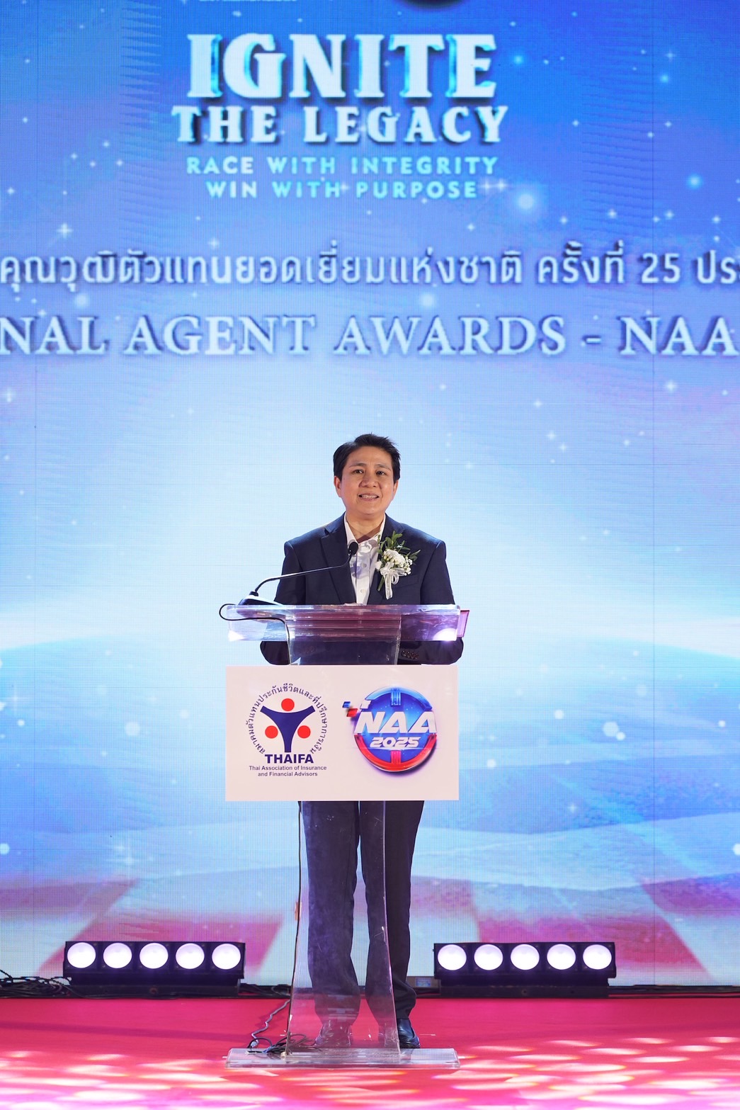 เมื่อวันที่ 9 กันยายน 2568 สมาคมตัวแทนประกันชีวิตและที่ปรึกษาการเงิน (THAIFA) ได้จัดพิธีมอบรางวัลคุณวุฒิตัวแทนยอดเยี่ยมแห่งชาติ National Agent Awards – NAA 2025 ณ The Banquet Hall at Nathong ภายใต้แนวคิด “IGNITE THE LEGACY : Race with Integrity, Win with Purpose” เพื่อเชิดชูเกียรติและยกย่องตัวแทนคุณภาพจากทั่วประเทศ