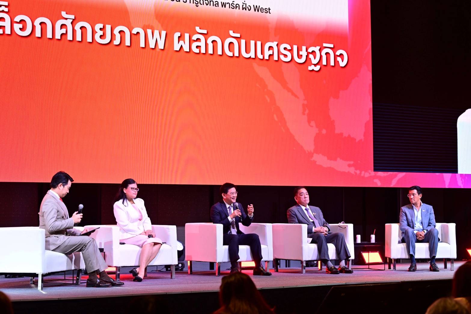 ภายในงานยังมีการเสวนาในหัวข้อ “ปลดล็อกศักยภาพ ผลักดันเศรษฐกิจ” โดย นายวุฒิไกร ลีวีระพันธุ์ ปลัดกระทรวงพาณิชย์ ชี้ว่าไทยติดกับดักรายได้ปานกลางมานานกว่า 30 ปี พร้อมเสนอให้เน้นจุดแข็งด้านเกษตรและท่องเที่ยว ด้าน ดร.พจน์ อร่ามวัฒนานนท์ ประธานกรรมการหอการค้าไทยและสภาหอการค้าแห่งประเทศไทย เสนอให้กำหนดวาระแห่งชาติในรัฐธรรมนูญเพื่อสร้างความต่อเนื่องทางนโยบาย พร้อมผลักดันการต่อต้านคอร์รัปชันและเปิดตลาดใหม่ผ่านความร่วมมือกับต่างประเทศ นอกจากนี้ นายอัสสเดช คงสิริ กรรมการและผู้จัดการตลาดหลักทรัพย์แห่งประเทศไทย ชี้ไทยยังขาดธุรกิจใหม่ที่เติบโตเป็นอุตสาหกรรมขนาดใหญ่ จึงต้องเชื่อมผู้ประกอบการรุ่นใหม่กับตลาดทุน เพื่อเร่งสร้างการลงทุน ขณะที่ นางสาวศุธาศินี สมิตร ที่ปรึกษาด้านการลงทุน สำนักงานคณะกรรมการส่งเสริมการลงทุน (BOI) มองว่าไทยมีศักยภาพด้านทำเลและโครงสร้างพื้นฐาน แต่ยังต้องเร่งพัฒนาเทคโนโลยีและความยั่งยืน เพื่อดึงดูดการลงทุนระยะยาว