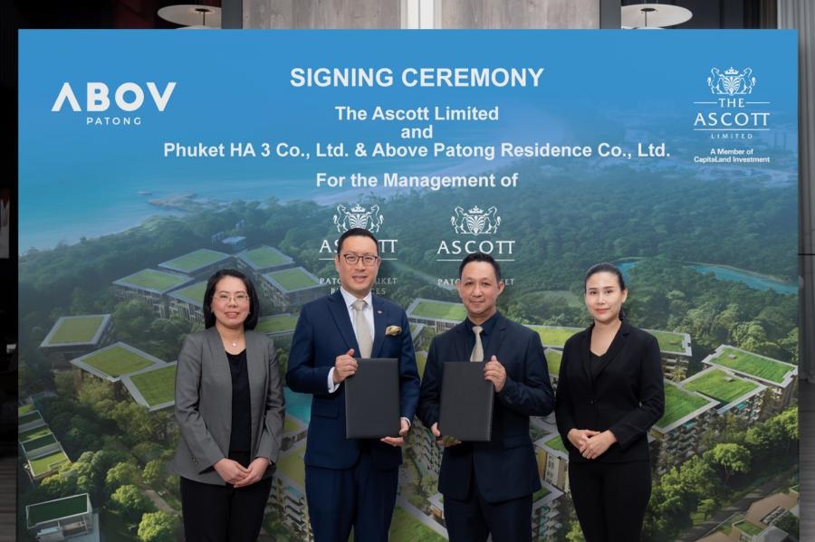 จากซ้ายไปขวา คุณเสาวรินทร์ จันทร์ประกายสี รองประธานฝ่ายพัฒนาธุรกิจ บริษัท ดิ แอสคอทท์ ลิมิเต็ด, คุณคณิต แสงมุกดา ผู้จัดการทั่วไปประจำประเทศไทยและลาว บริษัท ดิ แอสคอทท์ ลิมิเต็ด,คุณวุฒิไกร กุลสิริสวัสดิ์ ประธานเจ้าหน้าที่บริหาร บริษัท ภูเก็ต เอชเอ ทรี จำกัด และบริษัท อะโบฟ ป่าตอง เรสซิเดนซ์ จำกัด, คุณณดา อนิรุทธเทวา ประธานเจ้าหน้าที่ฝ่ายการตลาด บริษัท ภูเก็ต เอชเอ ทรี จำกัด และบริษัท อะโบฟ ป่าตอง เรสซิเดนซ์ จำกัด