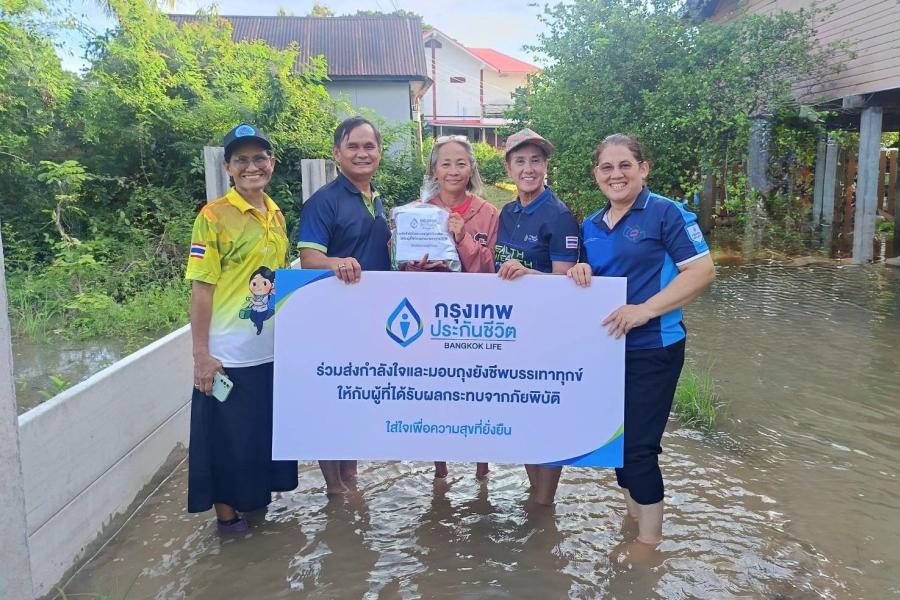 บริษัท กรุงเทพประกันชีวิต จำกัด (มหาชน) ตระหนักถึงความเดือดร้อนของพี่น้องประชาชนในหลายพื้นที่ที่ได้รับผลกระทบจากสถานการณ์อุทกภัยใน 3 จังหวัด ได้แก่ พิษณุโลก พิจิตร และเพชรบูรณ์ จึงส่งตัวแทนพนักงานจิตอาสาลงพื้นที่ส่งมอบถุงยังชีพและสิ่งของจำเป็น ประกอบด้วยเครื่องอุปโภคบริโภคที่จำเป็นในชีวิตประจำวัน เช่น ข้าวสาร อาหารแห้ง น้ำดื่มสะอาด รวมถึงอุปกรณ์ที่ช่วยบรรเทาความลำบากระหว่างการใช้ชีวิตท่ามกลางสถานการณ์น้ำท่วม เพื่อบรรเทาความเดือดร้อนเบื้องต้นแก่ผู้ประสบภัยที่ได้รับผลกระทบอย่างเร่งด่วน โดยได้ประสานงานร่วมกับหน่วยงานภาครัฐและผู้นำชุมชนในพื้นที่ เพื่อให้การช่วยเหลือส่งตรงถึงมือประชาชนอย่างทั่วถึงและรวดเร็ว