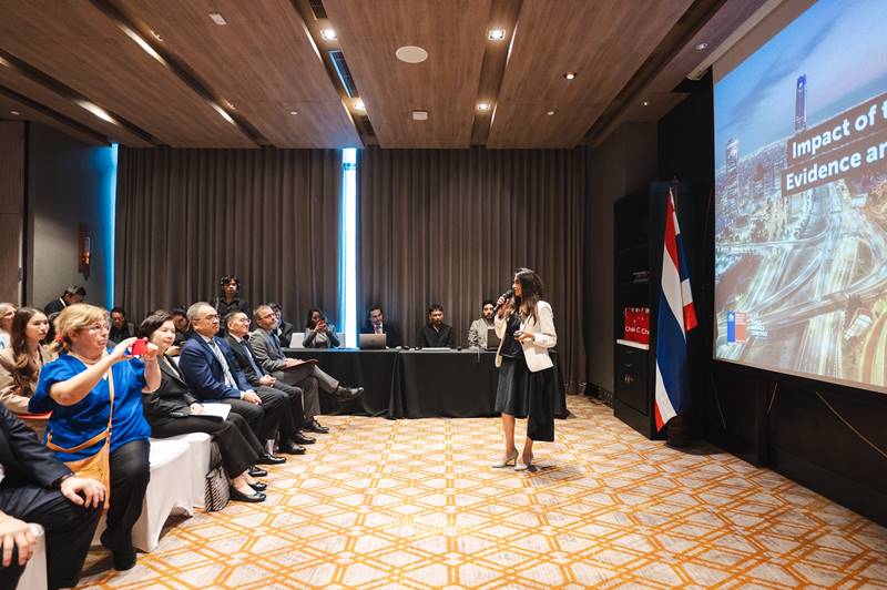 ธงชาติชิลีโดดเด่นสง่างามอยู่บนอาคารประดับไฟที่พาร์คพารากอน ศูนย์การค้าสยามพารากอน หนึ่งในศูนย์การค้าสุดหรูของอาเซียน ขณะที่การประชุม Chile–ASEAN Business Summit 2025 ปิดฉากอย่างงดงามที่โรงแรม ไฮแอท รีเจนซี สุขุมวิท ตลอดสามวันที่อัดแน่นไปด้วยการเสวนาระดับสูง การเจรจาจับคู่ธุรกิจ และการแสดงทางวัฒนธรรม ตอกย้ำบทบาทของชิลีในฐานะพันธมิตรที่มั่นคงของไทยและอาเซียน