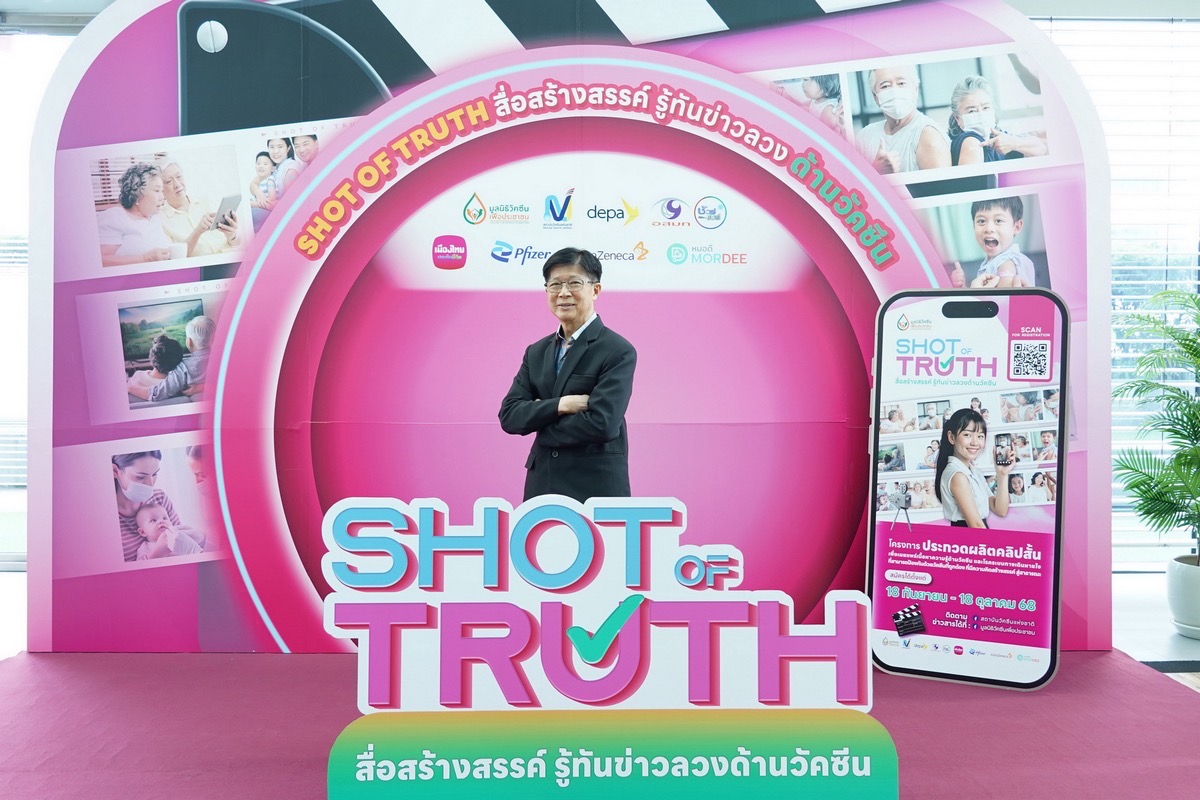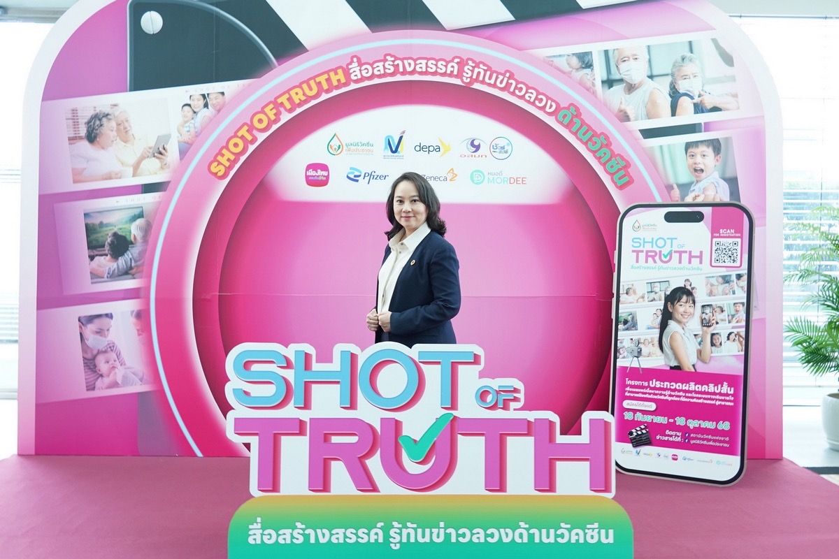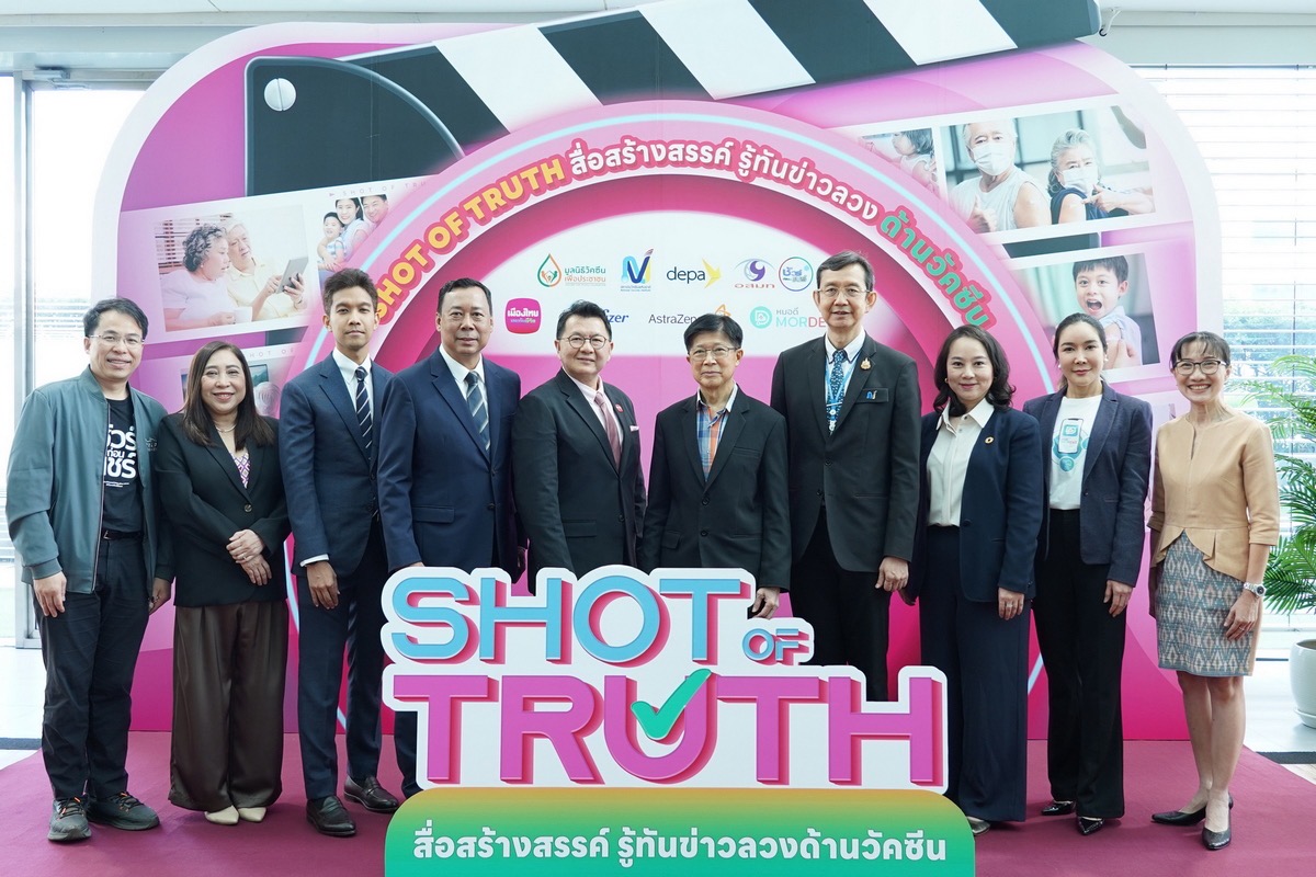 มูลนิธิวัคซีนเพื่อประชาชน ร่วมกับ สถาบันวัคซีนแห่งชาติ ผนึกภาคีเครือข่ายทั้งภาครัฐและเอกชน ได้แก่ สำนักงานส่งเสริมเศรษฐกิจดิจิทัล (depa) ศูนย์ชัวร์ก่อนแชร์ บริษัท อสมท จำกัด (มหาชน) บริษัท เมืองไทยประกันชีวิต จำกัด (มหาชน) บริษัท ไฟเซอร์ (ประเทศไทย) จำกัด บริษัท แอสตร้าเซนเนก้า (ประเทศไทย) จำกัด และ MorDee (หมอดี) แพลตฟอร์มบริการสุขภาพอัจฉริยะ โดย ทรู ดิจิทัล กรุ๊ป เปิดตัวโครงการ “Shot of Truth สื่อสร้างสรรค์ รู้ทันข่าวลวงด้านวัคซีน” ขอเชิญชวนนักเรียน นักศึกษา คนรุ่นใหม่ร่วมประกวดคลิปวิดีโอสั้น เพื่อสร้างความตระหนักถึงการสื่อสารข้อมูลที่ถูกต้องเกี่ยวกับวัคซีนและโรคระบบทางเดินหายใจที่สามารถป้องกันได้ด้วยวัคซีน สร้างภูมิคุ้มกันข่าวลวง ตลอดจนรับมือกับข้อมูลบิดเบือนที่เผยแพร่ผ่านสื่อสังคมออนไลน์ เพื่อให้ประชาชนสามารถเลือกรับวัคซีนได้อย่างเหมาะสม เสริมสร้างระบบสาธารณสุขของประเทศให้เข้มแข็ง