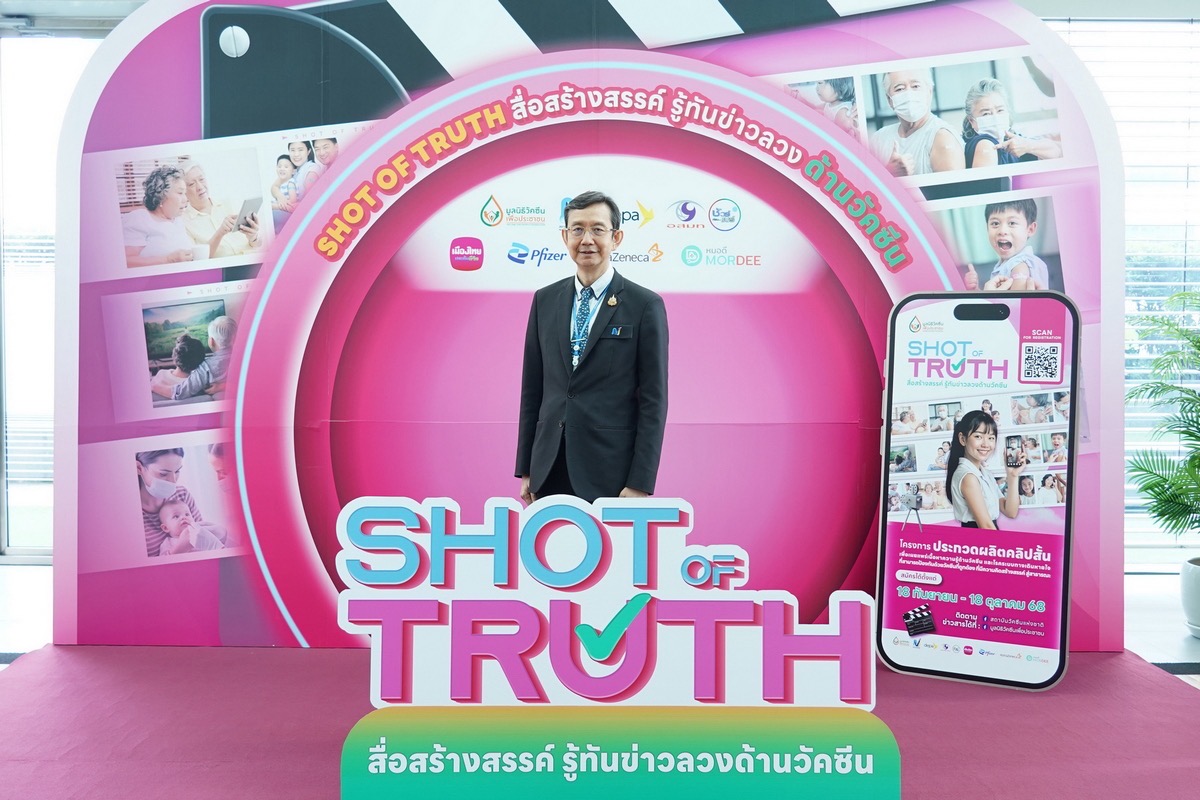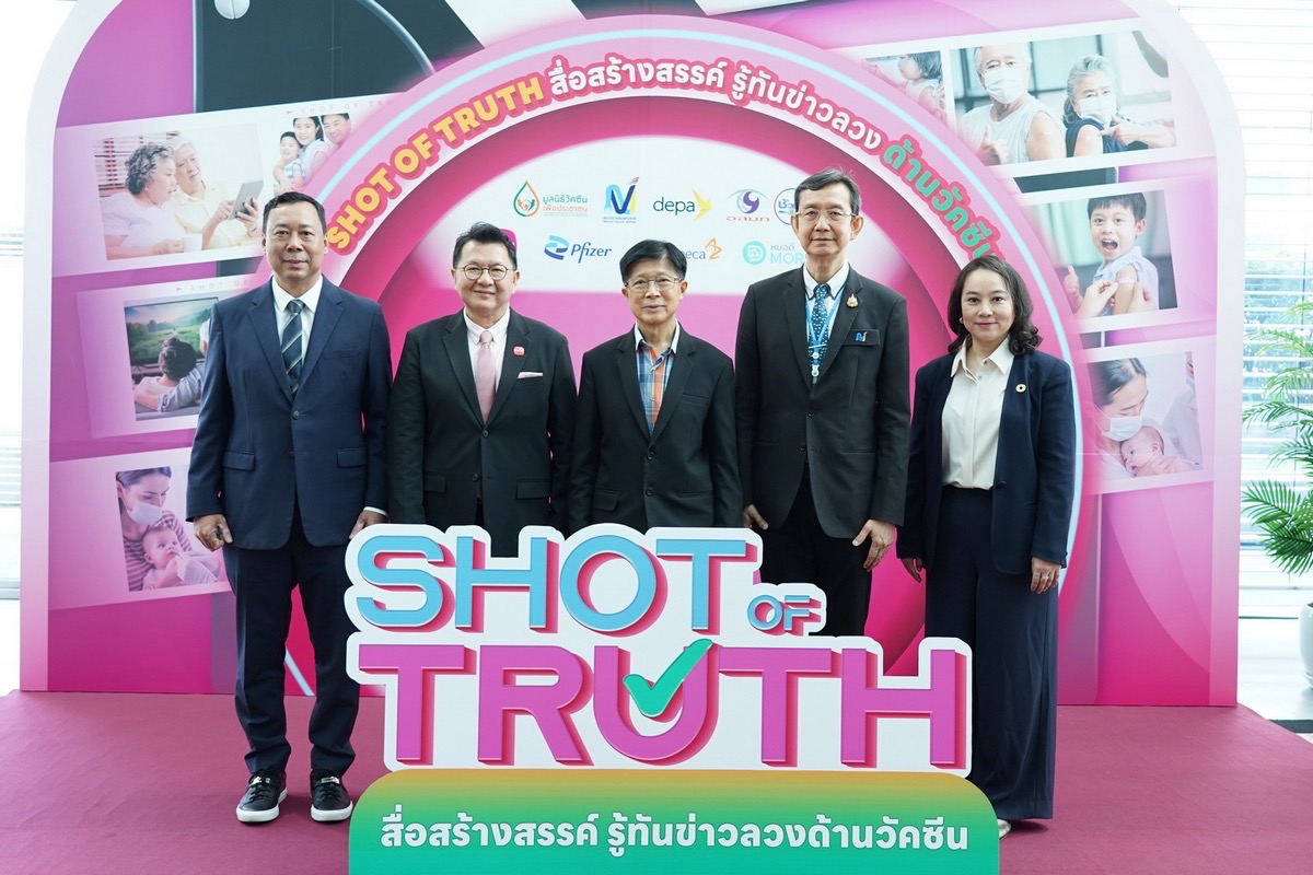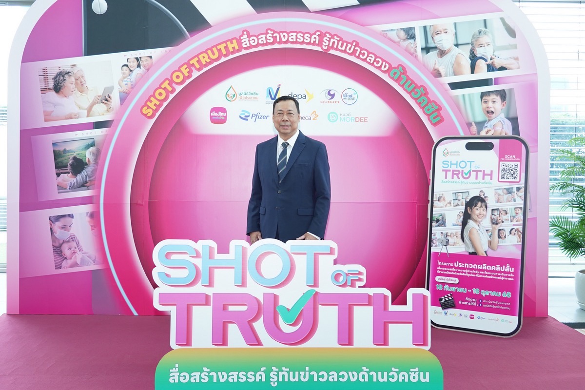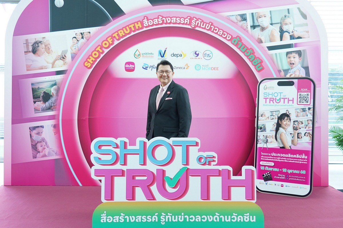 มูลนิธิวัคซีนเพื่อประชาชน ร่วมกับ สถาบันวัคซีนแห่งชาติ ผนึกภาคีเครือข่ายทั้งภาครัฐและเอกชน ได้แก่ สำนักงานส่งเสริมเศรษฐกิจดิจิทัล (depa) ศูนย์ชัวร์ก่อนแชร์ บริษัท อสมท จำกัด (มหาชน) บริษัท เมืองไทยประกันชีวิต จำกัด (มหาชน) บริษัท ไฟเซอร์ (ประเทศไทย) จำกัด บริษัท แอสตร้าเซนเนก้า (ประเทศไทย) จำกัด และ MorDee (หมอดี) แพลตฟอร์มบริการสุขภาพอัจฉริยะ โดย ทรู ดิจิทัล กรุ๊ป เปิดตัวโครงการ “Shot of Truth สื่อสร้างสรรค์ รู้ทันข่าวลวงด้านวัคซีน” ขอเชิญชวนนักเรียน นักศึกษา คนรุ่นใหม่ร่วมประกวดคลิปวิดีโอสั้น เพื่อสร้างความตระหนักถึงการสื่อสารข้อมูลที่ถูกต้องเกี่ยวกับวัคซีนและโรคระบบทางเดินหายใจที่สามารถป้องกันได้ด้วยวัคซีน สร้างภูมิคุ้มกันข่าวลวง ตลอดจนรับมือกับข้อมูลบิดเบือนที่เผยแพร่ผ่านสื่อสังคมออนไลน์ เพื่อให้ประชาชนสามารถเลือกรับวัคซีนได้อย่างเหมาะสม เสริมสร้างระบบสาธารณสุขของประเทศให้เข้มแข็ง
