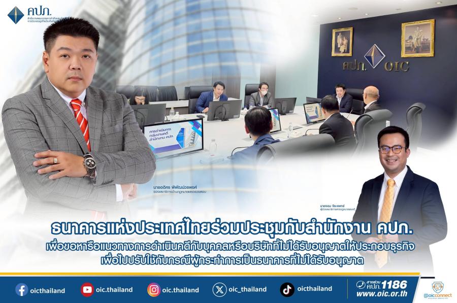 ธนาคารแห่งประเทศไทยร่วมประชุมกับสำนักงาน คปภ. เพื่อขอหารือแนวทางการดำเนินคดีกับบุคคลหรือบริษัทที่ไม่ได้รับอนุญาตใ