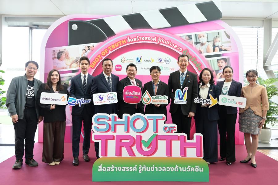 มูลนิธิวัคซีนเพื่อประชาชน ร่วมกับ สถาบันวัคซีนแห่งชาติ ผนึกภาคีเครือข่ายทั้งภาครัฐและเอกชน ได้แก่ สำนักงานส่งเสริมเศรษฐกิจดิจิทัล (depa)ศูนย์ชัวร์ก่อนแชร์ สำนักข่าวไทย อสมท บริษัท เมืองไทยประกันชีวิต จำกัด (มหาชน) บริษัท ไฟเซอร์ (ประเทศไทย) จำกัด บริษัท แอสตร้าเซนเนก้า (ประเทศไทย) จำกัด และ MorDee (หมอดี) แพลตฟอร์มบริการสุขภาพอัจฉริยะ โดย ทรู ดิจิทัล กรุ๊ป เปิดตัวโครงการ “Shot of Truth สื่อสร้างสรรค์ รู้ทันข่าวลวงด้านวัคซีน” ขอเชิญชวนนักเรียนนักศึกษา คนรุ่นใหม่ร่วมประกวดคลิปวิดีโอสั้น เพื่อสร้างความตระหนักถึงการสื่อสารข้อมูลที่ถูกต้องเกี่ยวกับวัคซีนและโรคระบบทางเดินหายใจที่สามารถป้องกันได้ด้วยวัคซีน สร้างภูมิคุ้มกันข่าวลวงตลอดจนรับมือกับข้อมูลบิดเบือนที่เผยแพร่ผ่านสื่อสังคมออนไลน์ เพื่อให้ประชาชนสามารถเลือกรับวัคซีนได้อย่างเหมาะสม เสริมสร้างระบบสาธารณสุขของประเทศให้เข้มแข็ง