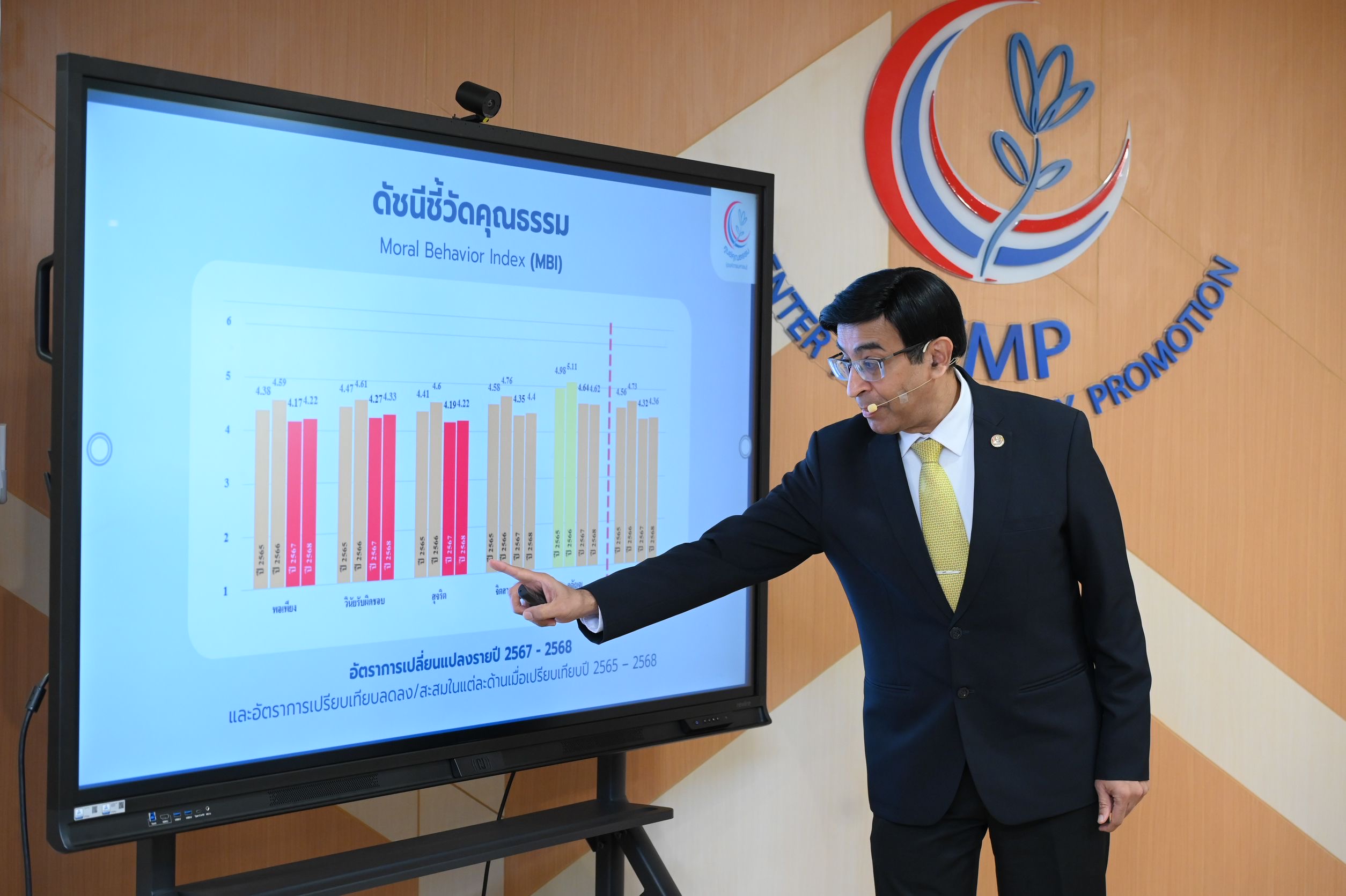 ศูนย์คุณธรรมเผย “ดัชนีสุจริตไทยน่าห่วง” แนะรัฐใช้ “คลังข้อมูลดิจิทัลคุณธรรม” กำหนดนโยบายสังคมควบคู่เศรษฐกิจ มั่นใจไทยขึ้นแท่น “นวัตกรรมคุณธรรมวัดผลได้” แห่งแรกของโลก