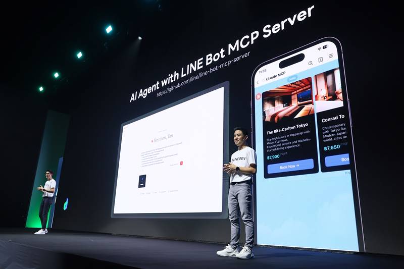 ภายในงาน LINE ได้เปิดตัว LINE Bot MCP Serverทำหน้าที่เป็นตัวกลางเชื่อมต่อ AI Agent เข้ากับ Messaging API ช่วยให้นักพัฒนาสามารถสร้างบริการที่ตอบโจทย์ผู้ใช้งานได้อย่างง่ายดาย โดยไม่จำเป็นต้องเขียนโค้ดเอง เพียงสั่งงานด้วย Prompt ก็สามารถสร้าง Flex Message หรือBroadcast ข้อความให้ได้ทันที ทำให้การพัฒนาบริการรวดเร็วและยืดหยุ่นมากขึ้น