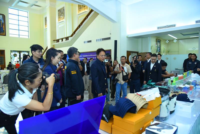 ด้านการจับกุมสินค้าละเมิดเครื่องหมายการค้า เมื่อวันที่ 20 สิงหาคม 2568 กรมศุลกากร โดยสำนักงานศุลกากรท่าเรือแหลมฉบัง พบสินค้าสินค้าละเมิดเครื่องหมายการค้า ไม่สำแดงในใบขนสินค้า อาทิ ผลิตภัณฑ์บำรุงผิว หูฟัง และกระเป๋าสะพาย จำนวน 3,432 ชิ้น มูลค่าความเสียหายทางเศรษฐกิจ 23.22 ล้านบาท ต่อมาเมื่อวันที่ 26 สิงหาคม 2568 ได้ตรวจใบขนขาเข้าจากประเทศจีน ไม่สำแดงในใบขนสินค้า พบสินค้าละเมิดเครื่องหมายการค้า ประเภทหมวก จำนวน 3,180 ชิ้น มูลค่าความเสียหายทางเศรษฐกิจ 13.56 ล้านบาท และเมื่อวันที่ 29 สิงหาคม 2568 ได้ตรวจใบขนขาเข้าจากประเทศจีน พบสินค้าสินค้าละเมิดเครื่องหมายการค้าไม่สำแดงในใบขนสินค้า ประเภทมาส์กสำหรับผิวหน้า ผลิตภัณฑ์บำรุงผิว และกระเป๋า จำนวน 2,559 ชิ้น มูลค่าความเสียหายทางเศรษฐกิจ 17.7 ล้านบาท อีกทั้งเมื่อวันที่ 5 กันยายน 2568 ได้ตรวจใบขนขาเข้าจากประเทศจีน ไม่สำแดงในใบขนสินค้า พบเป็นรองเท้าสตรี รองเท้ากีฬาและกระเป๋าประเภทต่างๆ รวมจำนวน 1,290 ชิ้น มูลค่าความเสียหายทางเศรษฐกิจ 3 ล้านบาท