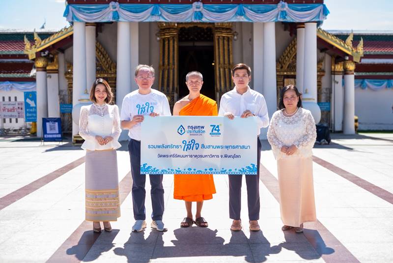กรุงเทพประกันชีวิต จัดกิจกรรม “รวมพลังศรัทธา ใส่ใจพระพุทธศาสนา” เนื่องในโอกาสครบรอบ 74 ปี สานต่อพันธกิจขององค์กรในเรื่องการใส่ใจชุมชนและสังคม ภายใต้แนวคิด“ใส่ใจพุทธศาสนา เพื่อความสุขที่ยั่งยืน” ควบคู่กับความเข้มแข็งของศาสนา ชุมชน และสังคมโดยได้มอบสิ่งอำนวยความสะดวกในการจัดกิจกรรมศาสนพิธี งานสาธารณะประโยชน์ พร้อมจัดพิธีทำบุญถวายภัตตาหารเพลแด่พระสงฆ์ เพื่อสืบสานพระพุทธศาสนา และเสริมสร้างความเป็นสิริมงคล โดยมีผู้บริหาร พันธมิตร ทีมตัวแทน และลูกค้า เข้าร่วมงาน นอกจากนี้ยังได้จัดซุ้มอาหารและเครื่องดื่มโรงทาน สำหรับประชาชนทั่วไปในพื้นที่ และนักท่องเที่ยว จำนวน 600 คน และยังมอบต้นไม้เพื่อเพิ่มความร่มรื่น ณ วัดพระศรีรัตนมหาธาตุวรมหาวิหาร จังหวัดพิษณุโลก