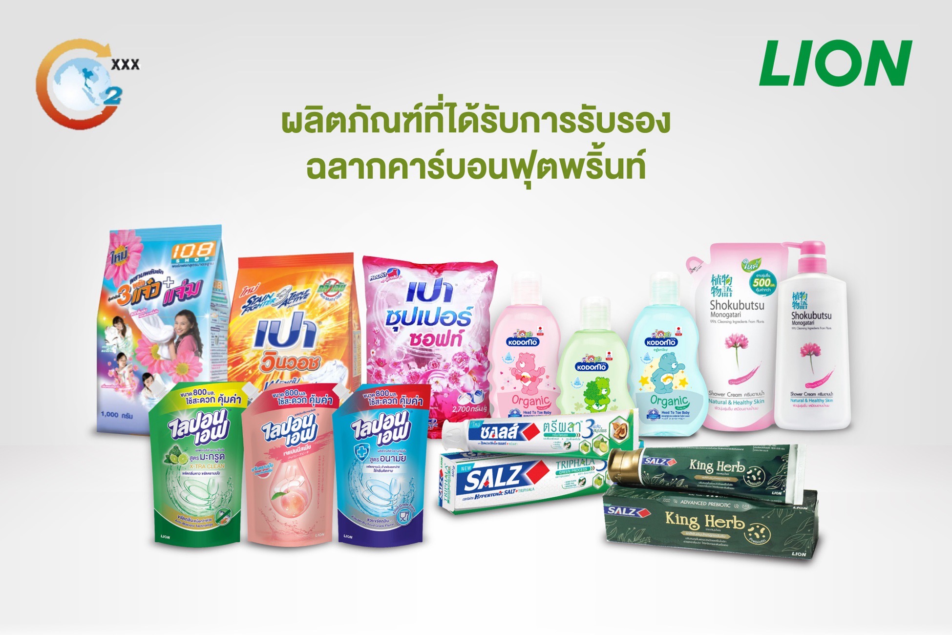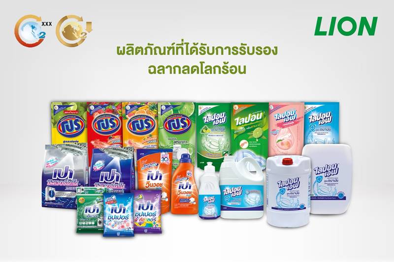 ปัจจุบัน ไลอ้อนมีผลิตภัณฑ์กว่า 17 SKUs ที่ได้รับฉลากลดโลกร้อน อาทิ ไลปอนเอฟ สูตรอนามัย ไลปอนเอฟ สูตรมะกรูด ไลปอนเอฟ เจแปนนีสพีช และไลปอน กลิ่นชามะนาว เป็นต้นในรูปแบบ “ถุงเติมรีฟิล” และยังเป็นรายแรกในประเทศไทยที่ได้รับฉลากลดโลกร้อน (Carbon Footprint Reduction) ในกลุ่มผลิตภัณฑ์น้ำยาล้างจาน อย่างต่อเนื่อง ตั้งแต่ปี 2014 จนถึง ปัจจุบัน