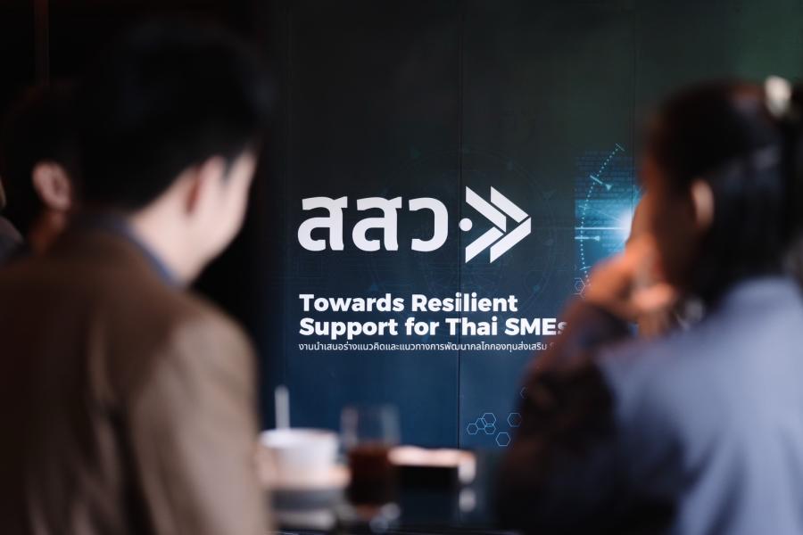 สสว. ร่วมกับ มหาวิทยาลัยธรรมศาสตร์ เฟ้นหาแนวทางการส่งเสริม SME เป้าหมายเพื่อให้เกิดความคล่องตัวในการช่วยเหลือ ลดภาระด้านงบประมาณของภาครัฐ และสร้างการมีส่วนร่วมจากทุกภาคส่วน เตรียมประยุกต์ใช้แนวทางของกองทุนประกันความเสี่ยง (BSMRS) จากประเทศญี่ปุ่น ด้วยการผนึกกำลังทั้ง SME ธุรกิจรายใหญ่ และภาครัฐ ภายใต้การวางรากฐานระบบที่โปร่งใส มีประสิทธิภาพ เพื่อให้เป็นเครื่องมือเชิงนโยบายที่ช่วยให้ SME เติบโตได้อย่างมีประสิทธิภาพ