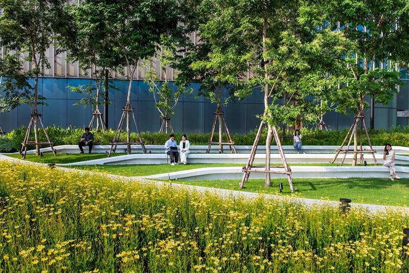 4. ปอดขนาดใหญ่ใจกลางเมือง พื้นที่เปิดโล่งขนาดใหญ่เพื่อการพักผ่อนหย่อนใจ – วัน แบงค็อก จัดสรรพื้นที่กว่าครึ่งหนึ่งของโครงการให้เป็นพื้นที่สีเขียวและพื้นที่เปิดโล่ง รายล้อมด้วยต้นไม้ ดอกไม้นานาพันธุ์ และมุมพักผ่อนตามจุดต่าง ๆ ทั่วทั้งโครงการ เชิญชวนผู้คนให้ออกไปเดินสูดอากาศบริสุทธิ์ ร่วมกิจกรรมสร้างสรรค์และออกกำลังกาย อีกทั้งยังทำหน้าที่เป็นที่พักพิงสาธารณะสำหรับทุกคนในยามฉุกเฉิน