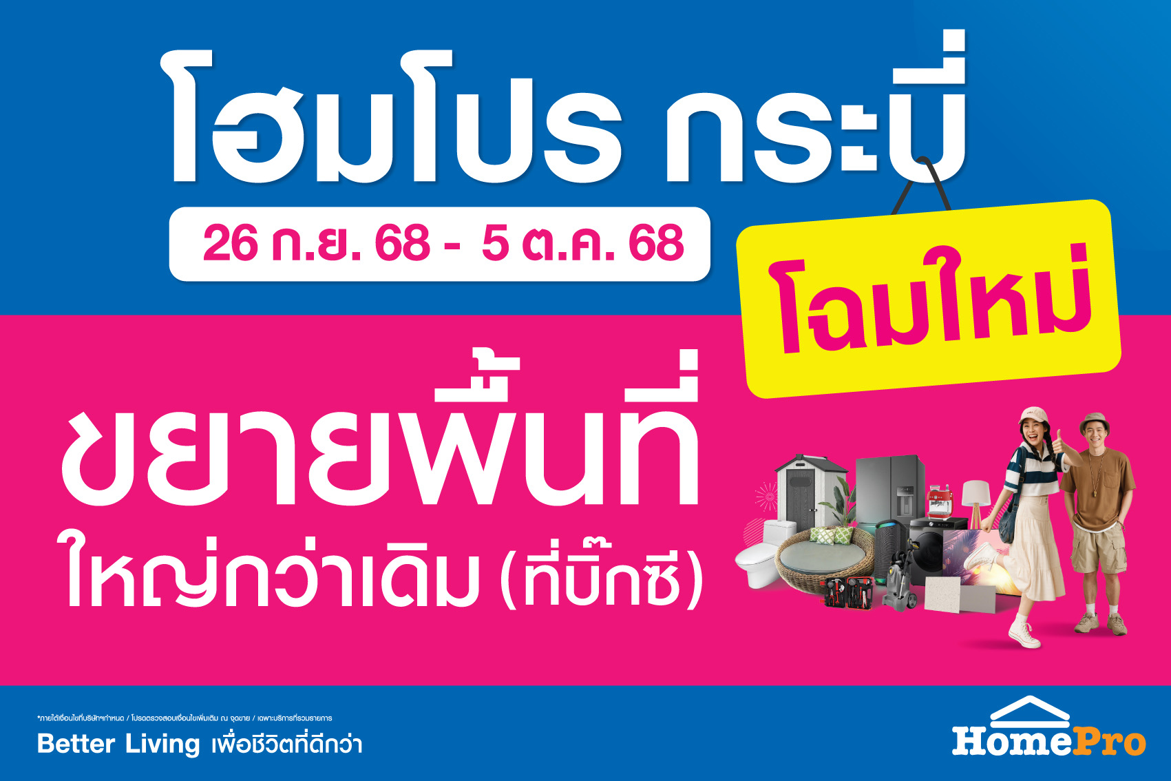 โฮมโปร รุกตลาดบ้านท้ายปีต่อเนื่อง ทุ่มงบ 113 ล้านบาท ฉลองโฉมใหม่! โฮมโปร กระบี่ (ที่บิ๊กซี)ขยายพื้นที่ใหญ่กว่าเดิม 2 ชั้น รวมกว่า 6,720 ตร.ม.ตอบโจทย์การขยายตัวในเมืองท่องเที่ยวชั้นนำ ยกระดับสู่ศูนย์รวมโซลูชันครบทั้งสินค้าและบริการเรื่องบ้าน ที่ตอบโจทย์ทั้งการอยู่อาศัย คนทำงาน และผู้ประกอบการ ด้วยโซน Hard Line – Soft Line ที่ครบครัน ตั้งแต่งานโครงสร้างจนถึงของแต่งบ้าน และมีสินค้า Private Brand by HomePro ที่โดดเด่นทั้งดีไซน์และคุณภาพ พร้อมเสิร์ฟโปรแรง 10 วันเต็ม ตั้งแต่ 26 กันยายน – 5 ตุลาคม 2568 นี้ ตั้งเป้ายอดขายไม่ต่ำกว่า 60 ล้านบาทต่อเดือน