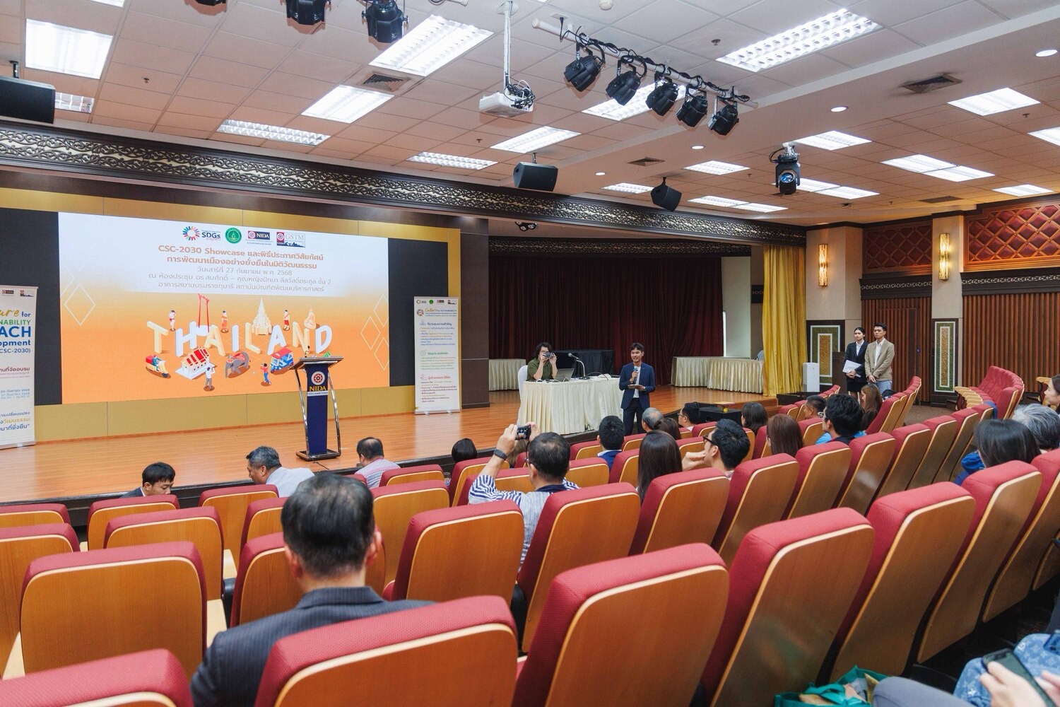 กรุงเทพฯ, 27 กันยายน 2568 – กรมส่งเสริมวัฒนธรรม (สวธ.) ร่วมกับคณะการจัดการการท่องเที่ยว สถาบันบัณฑิตพัฒนบริหารศาสตร์ (นิด้า) และพันธมิตร จัดงาน CSC-2030 Showcase และพิธีประกาศวิสัยทัศน์การพัฒนาเมืองอย่างยั่งยืนในมิติวัฒนธรรม พร้อมมอบประกาศนียบัตรแก่ผู้สำเร็จหลักสูตรรุ่นแรก ถือเป็นการปิดโครงการด้วยความสำเร็จอย่างสมบูรณ์ และเป็น “ก้าวแรกสำคัญ” ในการสร้างบุคลากรขับเคลื่อนเมืองและชุมชนสู่ความยั่งยืน