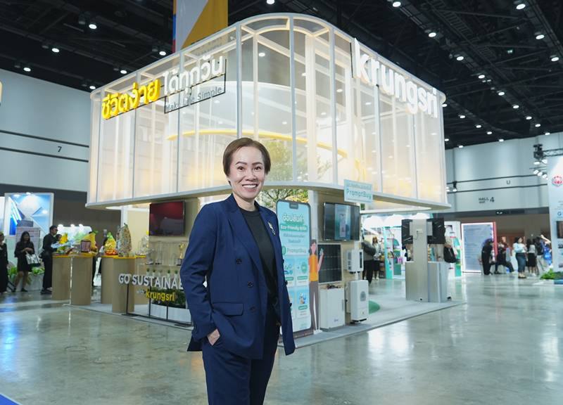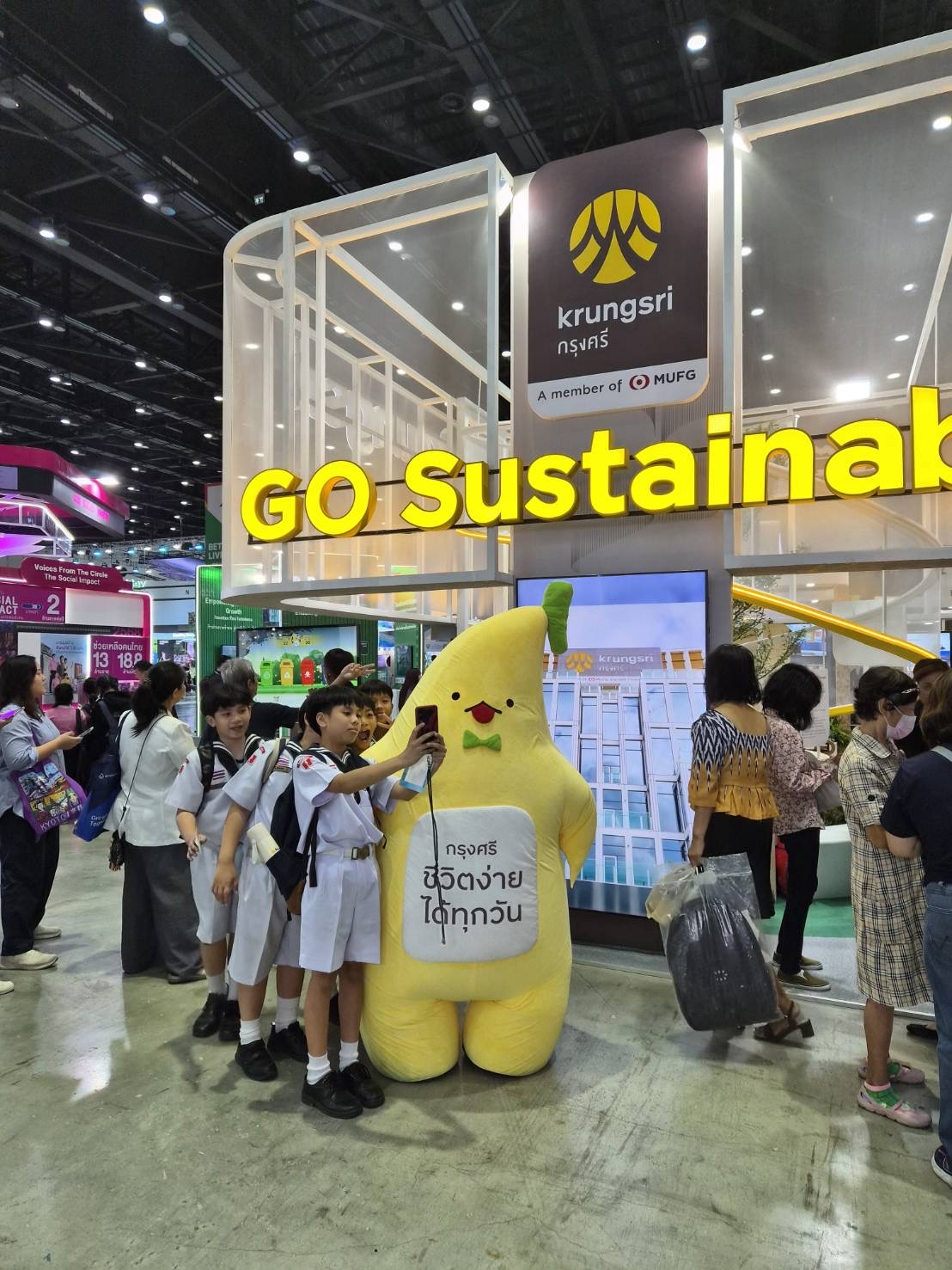 ปีนี้กรุงศรีนำเสนอพื้นที่จัดแสดงภายใต้แนวคิด“GO Sustainable with krungsri” ที่ออกแบบอย่างใส่ใจสิ่งแวดล้อม โดยการนำโครงสร้างบางส่วนจากงานเดิมกลับมาใช้ซ้ำ (Reuse) และเลือกใช้วัสดุที่เป็นมิตรต่อสิ่งแวดล้อม ถ่ายทอดแนวคิด “หลักคิด–หลักปฏิบัติ” ด้านความยั่งยืนของธนาคารและบริษัทในเครือในมิติที่จับต้องได้ ภายในบูธผู้เข้าชมจะได้พบกับกิจกรรมอินเตอร์แอคทีฟที่ทั้งสนุกและให้ความรู้ ไม่ว่าจะเป็น เกมแยกขยะ เสริมทักษะการจัดการของเสียอย่างถูกวิธี โซนถ่ายภาพ–แชร์โซเชียล พร้อมรับของที่ระลึก Krungsri Reusable Bag รวมถึง นิทรรศการที่นำเสนอผลงานชนะเลิศจาก From Waste to Wow Sustainable Sculpture Contest 2025 by Krungsri ศิลปะสร้างสรรค์จากวัสดุรีไซเคิลที่สะท้อนพลังความคิดใหม่ของเยาวชน นอกจากนี้ยังมีการแนะนำ ผลิตภัณฑ์และบริการด้าน Sustainable Finance ที่ออกแบบมาเพื่อสนับสนุนการเปลี่ยนผ่านสู่ธุรกิจคาร์บอนต่ำอย่างเป็นรูปธรรม ซึ่งกรุงศรีต้องการสร้างพื้นที่ที่ผสานทั้งความรู้ ความบันเทิง และแรงบันดาลใจให้ผู้เข้าชมได้สัมผัสการเงินเพื่อความยั่งยืนในทุกมิติ