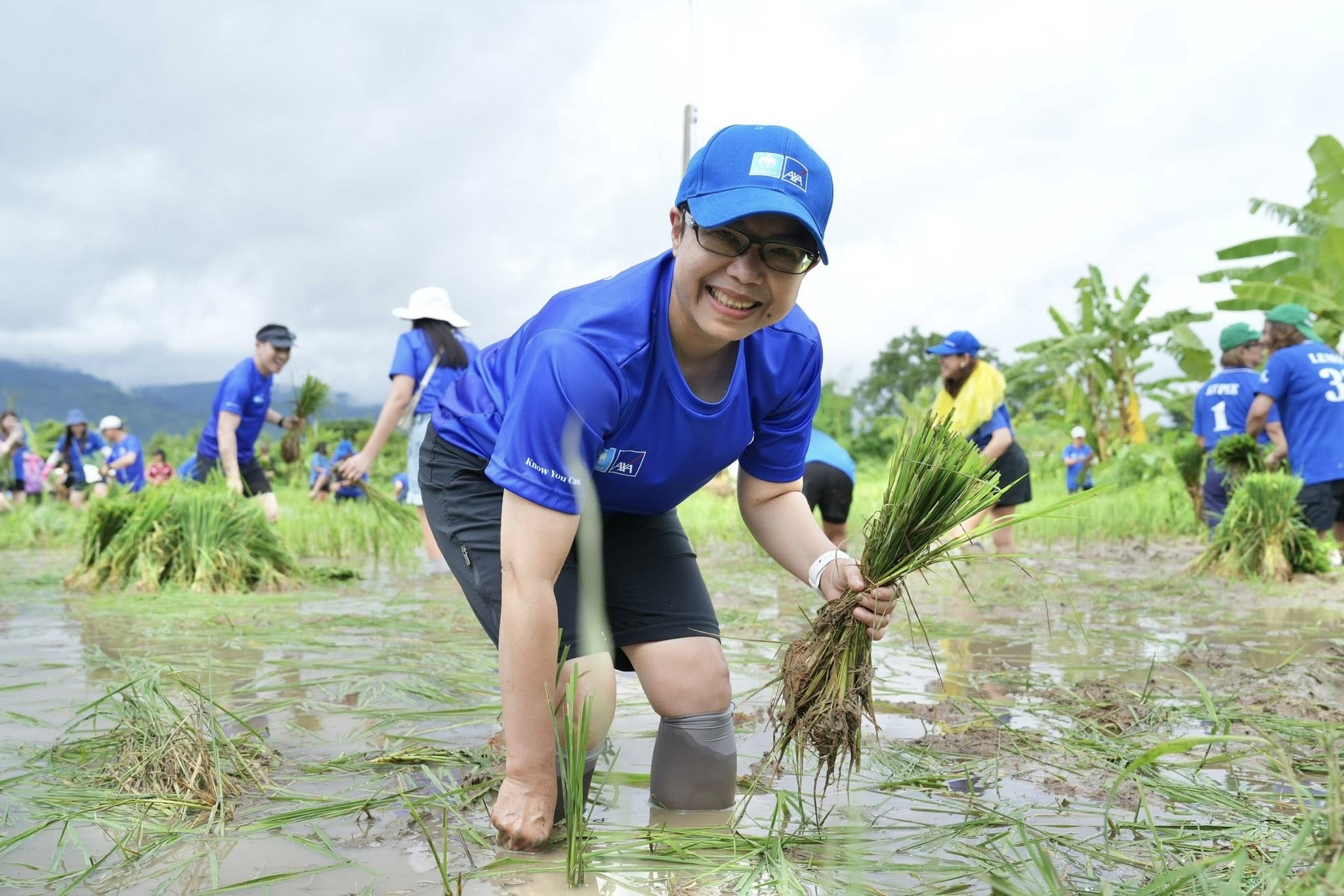 บมจ.กรุงไทย-แอกซ่า ประกันชีวิต นำโดย คุณณัฐพิสิษฐ์ ครุฑครองชัย ประธานเจ้าหน้าที่บริหาร (คนที่ 8 จากซ้าย แถวที่สาม) และ คุณบุปผาวดี โอวรารินท์ ประธานเจ้าหน้าที่บริหาร ฝ่ายการตลาด (คนที่ 9จากซ้าย แถวที่สาม) นำทีมคณะผู้บริหาร พนักงาน และฝ่ายขายจิตอาสา ร่วมเดินหน้าสร้างความยั่งยืนให้กับชุมชน ผ่านกิจกรรมปลูกข้าว พร้อมทั้งมอบอุปกรณ์ไฟแสงสว่างระบบโซลาร์เซลล์และพันธุ์ปลานานาชนิด ภายใต้โครงการ “แผ่นดินทองเพื่อน้องๆบ้านนานา ปีที่ 18” ณ. มูลนิธิพันธกิจเด็กและชุมชน บ้านนานา อ. แม่สาย จ. เชียงราย ซึ่งเป็นโครงการที่บริษัทฯ จัดทำอย่างต่อเนื่อง และช่วยสร้างรายได้ที่ยั่งยืน โดยสามารถช่วยสร้างผลผลิตข้าวให้แก่ชุมชนเพิ่มขึ้น จาก 2,000 ก.ก. ต่อปี เป็นมากกว่า 7,000 ก.ก. ต่อปี