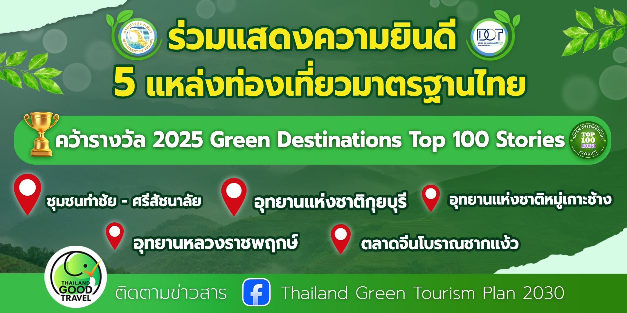 กรมการท่องเที่ยว ยินดีสุดยอด 5 แหล่งท่องเที่ยวมาตรฐานไทย สร้างชื่อบนเวทีโลก คว้ารางวัล 2025 Green Destinations Top 100 Stories