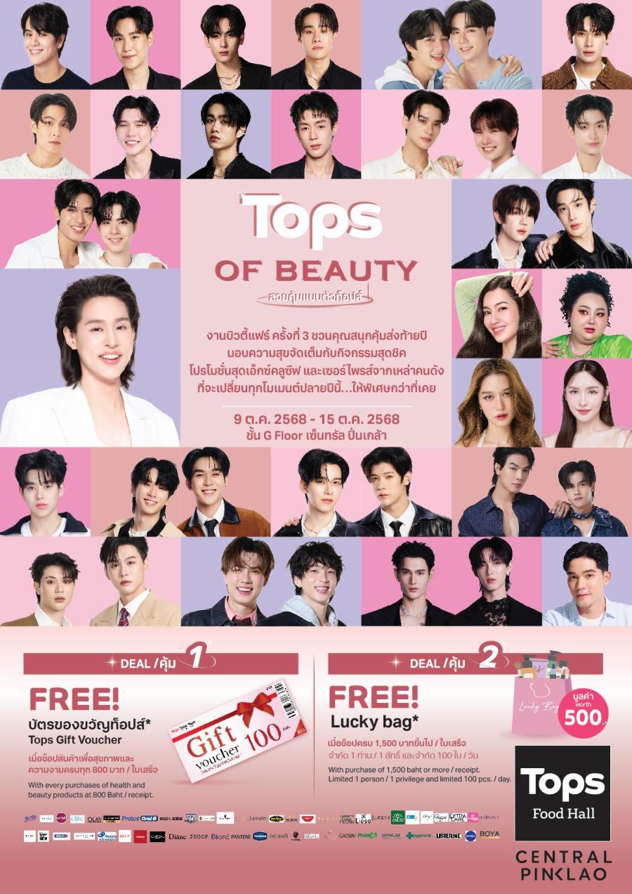 กรุงเทพฯ 7 ตุลาคม 2568 - ท็อปส์ ธุรกิจกลุ่มฟู้ด ในเครือเซ็นทรัล รีเทล จัดงาน ‘TOPS of Beauty’ ชวนขาช้อปและสายบิวตี้มาช้อปสุดคุ้มกับหลากหลายสินค้าบิวตี้ไอเทมแบรนด์ดัง พร้อมเสิร์ฟความฟินกับกิจกรรมสุดเอ็กซ์คลูซีฟจากเหล่าศิลปิน ดารา และบิวตี้อินฟลูเอนเซอร์ชื่อดังแบบใกล้ชิด นำโดย ซูเปอร์สตาร์สุดฮอตอย่าง บิวกิ้น พุฒิพงศ์, นางเอกขวัญใจมหาชน เบลล่า ราณี, นักร้องสาวเสียงดี วีโอเลต วอเทียร์ และยังมีทัพนักแสดงอีกมากมายที่จะแวะเวียนมาสร้างสีสัน อาทิ โทมัส ธีร์ทัศน์ , เฟิร์ส คณพันธ์, นนน กรภัทร์, เติ้ล มติมันท์ & เฟิร์สวัน วรรณกร , นิว ชยภัค , แซนต้า พงศภัค , ซี พฤกษ์ - นุนิว ชวรินทร์ , จูเนียร์ ปณชัย , เก่ง หฤษฎ์ - น้ำปิง นภัสกร ฯลฯ โดยภายในงานยกขบวนไอเทมสินค้าบิวตี้จากแบรนด์ชั้นนำและแบรนด์พันธมิตรมาให้ช้อปทั้ง สกินแคร์ เมกอัพ บอดี้แคร์ ผลิตภัณฑ์ดูแลเส้นผม,ผลิตภัณฑ์ดูแลช่องปาก และบิวตี้แกดเจ็ต อาทิ Puricas, Mondahmin, A BONNE’, MISE en SCÈNE, RYO, SYSTEMA, SALZ, SKYNLAB, ardermis, Dove, Biore, Liese, JERGENS, BOYA, NIVEA, TSUBAKI, Fino, De Leaf, Schwarzkopf, GARNIER, Head & Shoulders, PANTENE, OLAY, Colgate, Bifesta, BeNice และอีกมากมายมาให้แบบเลือกช้อป พร้อมมอบโปรโมชันสุดคุ้ม คุ้มที่ 1 รับบัตรของขวัญท็อปส์ มูลค่า 100 บาท เมื่อซื้อสินค้าสุขภาพและความงามที่ร่วมรายการครบทุก 800 บาทขึ้นไป/ ใบเสร็จ คุ้มที่ 2 รับกระเป๋า Lucky Bag มูลค่า 500 บาท เมื่อซื้อสินค้าคุณภาพในงานครบ 1,500 บาท /ใบเสร็จ (จำกัด 1 ท่าน / 1 สิทธิ์ และจำกัด 100 ใบ/วัน) ตั้งแต่วันที่ 9 – 15 ตุลาคม 2568 ที่ ชั้น G ศูนย์การค้าเซ็นทรัล ปิ่นเกล้า หรือช้อปสะดวกทุกที่ผ่าน TOPS Online ติดตามข้อมูลและรายละเอียดเพิ่มเติมได้ที่ www.tops.co.th, เฟซบุ๊ก TOPSThailand และไลน์ @TOPSThailand.