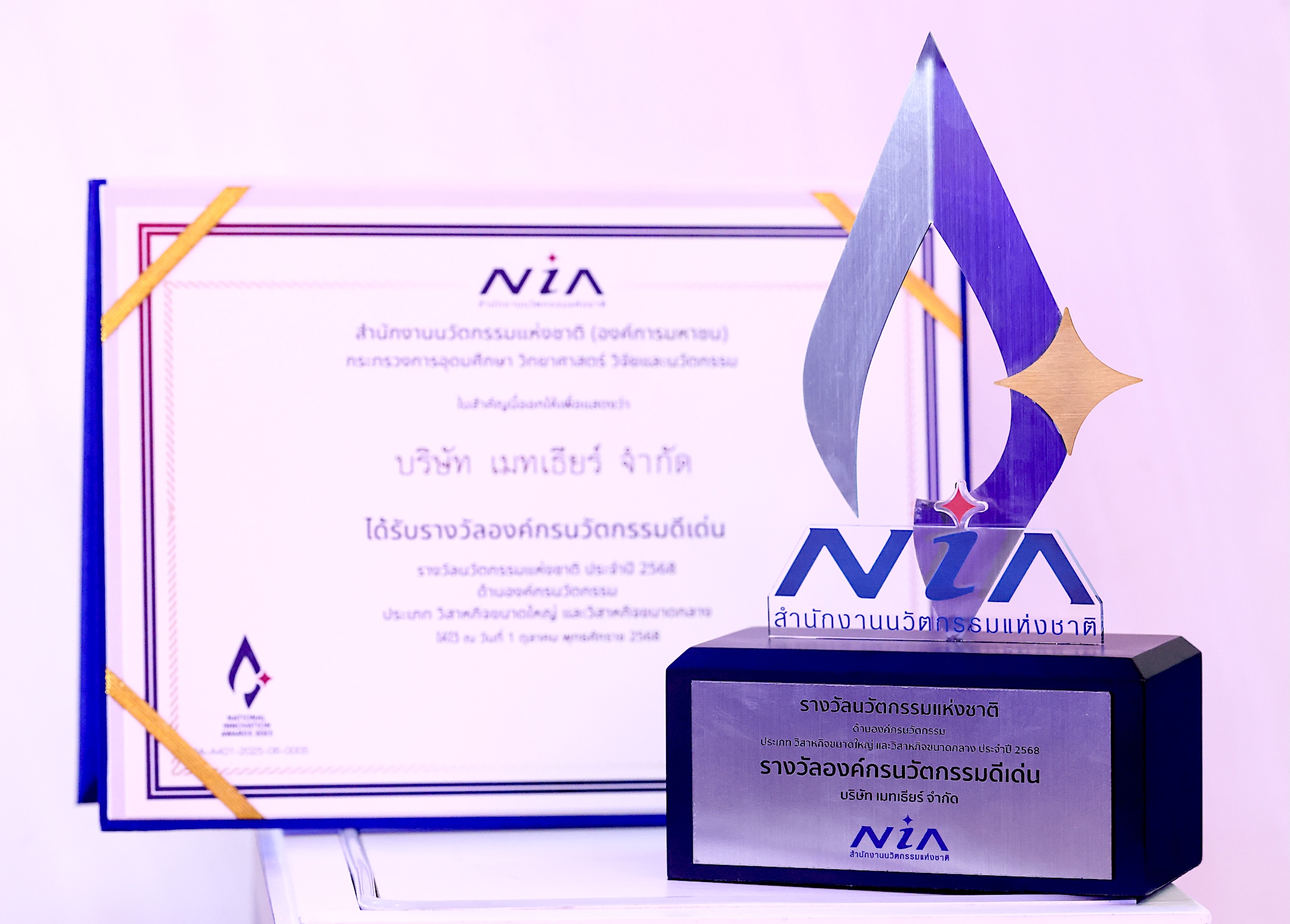 บริษัท เมทเธียร์ จำกัด (Metthier) ประกาศศักดาในเวทีนวัตกรรมไทย คว้ารางวัล นวัตกรรมแห่งชาติ ประจำปี 2568 ด้านองค์กรนวัตกรรม ประเภทวิสาหกิจขนาดใหญ่และวิสาหกิจขนาดกลาง จากสำนักงานนวัตกรรมแห่งชาติ (องค์การมหาชน) หรือ NIA ในงาน “วันนวัตกรรมแห่งชาติ 2568” ที่จัดขึ้น ณ โรงแรมดุสิตธานี กรุงเทพฯ รางวัลนวัตกรรมแห่งชาติ ถือเป็นรางวัลอันทรงเกียรติสูงสุดของวงการนวัตกรรมไทย ที่มอบให้แก่องค์กรที่มีความโดดเด่นด้านการบริหารจัดการนวัตกรรมในองค์กร โดยใช้ ความรู้ เทคโนโลยี และความคิดสร้างสรรค์ มาประยุกต์ใช้ในทุกมิติ ตั้งแต่ระดับยุทธศาสตร์ กระบวนการ ไปจนถึงระดับโครงสร้างพื้นฐาน เพื่อสร้างคุณค่าและการเติบโตอย่างยั่งยืนให้แก่องค์กรและประเทศชาติ