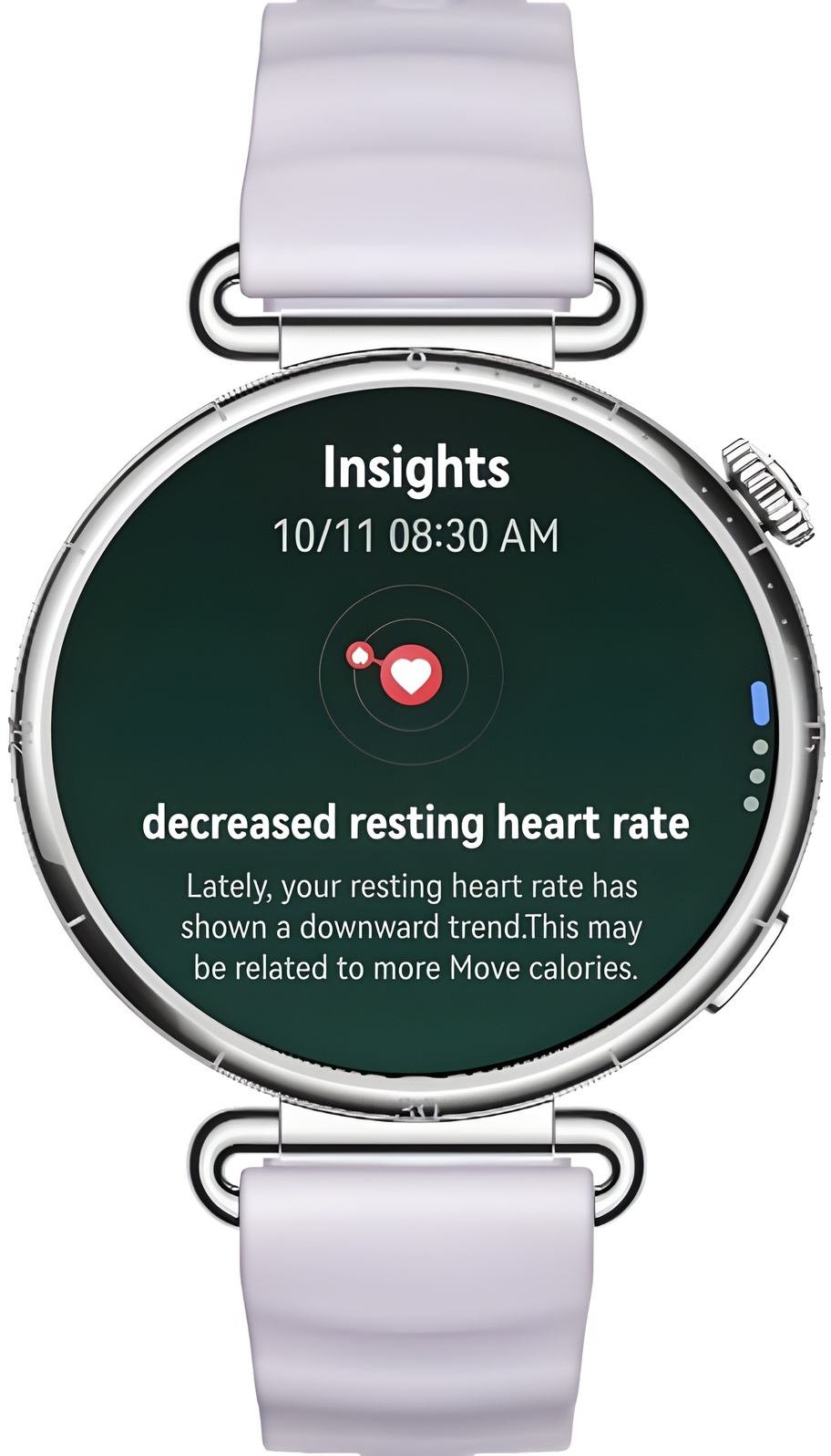 HUAWEI WATCH GT 6 Series สามารถดูข้อมูลเชิงลึกด้านสุขภาพแบบองค์รวมผ่านฟีเจอร์ Health Insight ที่รวบรวมและวิเคราะห์ข้อมูลสุขภาพสำคัญจากหลากหลายมิติ ไม่ว่าจะเป็นกิจกรรมการออกกำลังกาย สุขภาพหัวใจ1 การนอนหลับ ระดับความเครียด อารมณ์ และค่า SpO₂1 เพื่อประเมินและนำเสนอคะแนนสุขภาพของผู้ใช้ ช่วยให้เข้าใจสถานะสุขภาพโดยรวมของตนเองได้ง่ายและชัดเจน พร้อมข้อมูลวิเคราะห์ที่ครอบคลุม เพื่อเป็นแนวทางในการดูแลและปรับปรุงสุขภาพให้ดียิ่งขึ้น