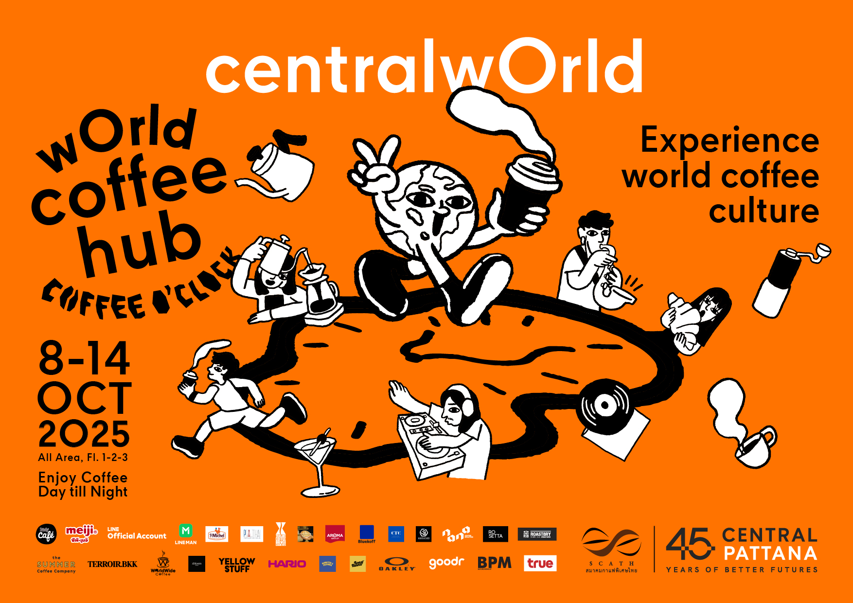 ร่วมเปิดประสบการณ์ World Coffee Hub แล้วมาสนุก จิบกาแฟไปด้วยกัน ตั้งแต่เช้ายันค่ำ ตั้งแต่ 8ตุลาคม 2568 ถึง 14 ตุลาคม 2568 เต็มพื้นที่จัดงานของศูนย์การค้าเซ็นทรัลเวิลด์ ณ โซน Eden 1, Eden 2 และ Eden 3 โซน Central Court โซน Dazzle โซน Beacon 2, Beacon 3 และ Beacon 4 และโซน Temp 6