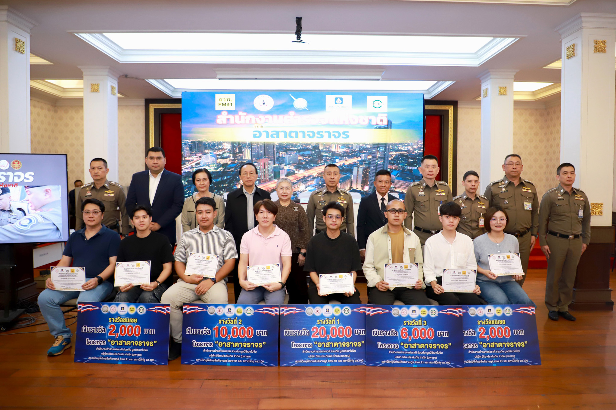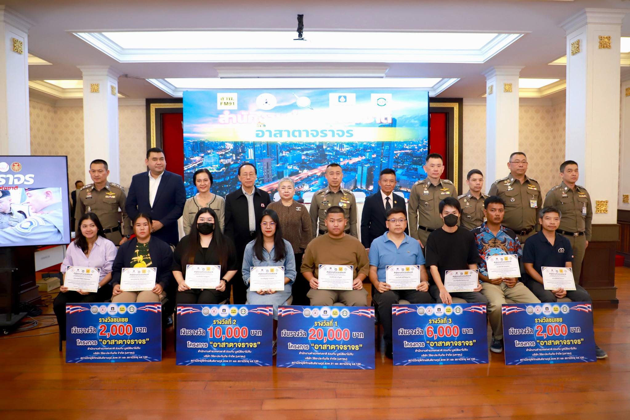 พล.ต.ท.สำราญ นวลมา ผู้ช่วยผู้บัญชาการตำรวจแห่งชาติ นางสาวกานดา วัฒนายิ่งสมสุข ที่ปรึกษาฝ่ายสื่อสารองค์กร บริษัท วิริยะประกันภัย จำกัด (มหาชน) นายแพทย์แท้จริง ศิริพานิช เลขาธิการมูลนิธิเมาไม่ขับ รวมทั้งภาคีเครือข่าย ทั้ง จส.100 และ สวพ.91 ร่วมแถลงผลการมอบรางวัลและใบประกาศเกียรติคุณ “โครงการอาสาตาจราจร” ประจำเดือนเมษายนและพฤษภาคม2568 แก่เจ้าของคลิปที่บันทึกการทำผิดกฎจราจร ทั้งหมด 20 รางวัล รวมเป็นเงินจำนวนทั้งสิ้น 100,000 บาท เพื่อกระตุ้นให้ประชาชนตระหนักถึงความสำคัญของการเคารพกฎจราจร และเป็นพลเมืองตื่นรู้ที่มีส่วนสำคัญในการสร้างวัฒนธรรมความปลอดภัยบนท้องถนนอย่างเป็นรูปธรรม โดยพิธีมอบจัดขึ้น ณ ห้องสารสิน สำนักงานตำรวจแห่งชาติ แขวงปทุมวัน เขตปทุมวัน กรุงเทพฯ