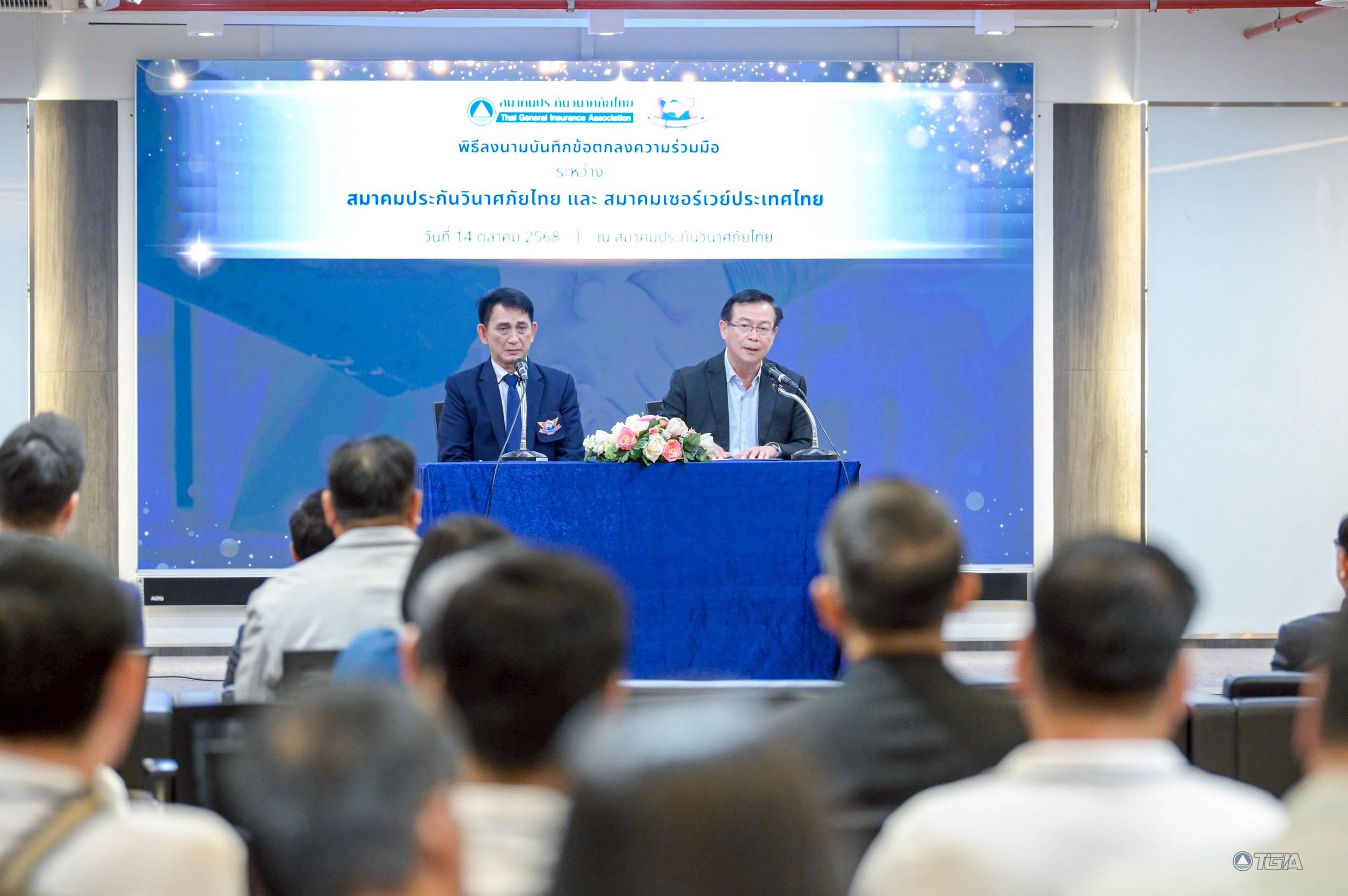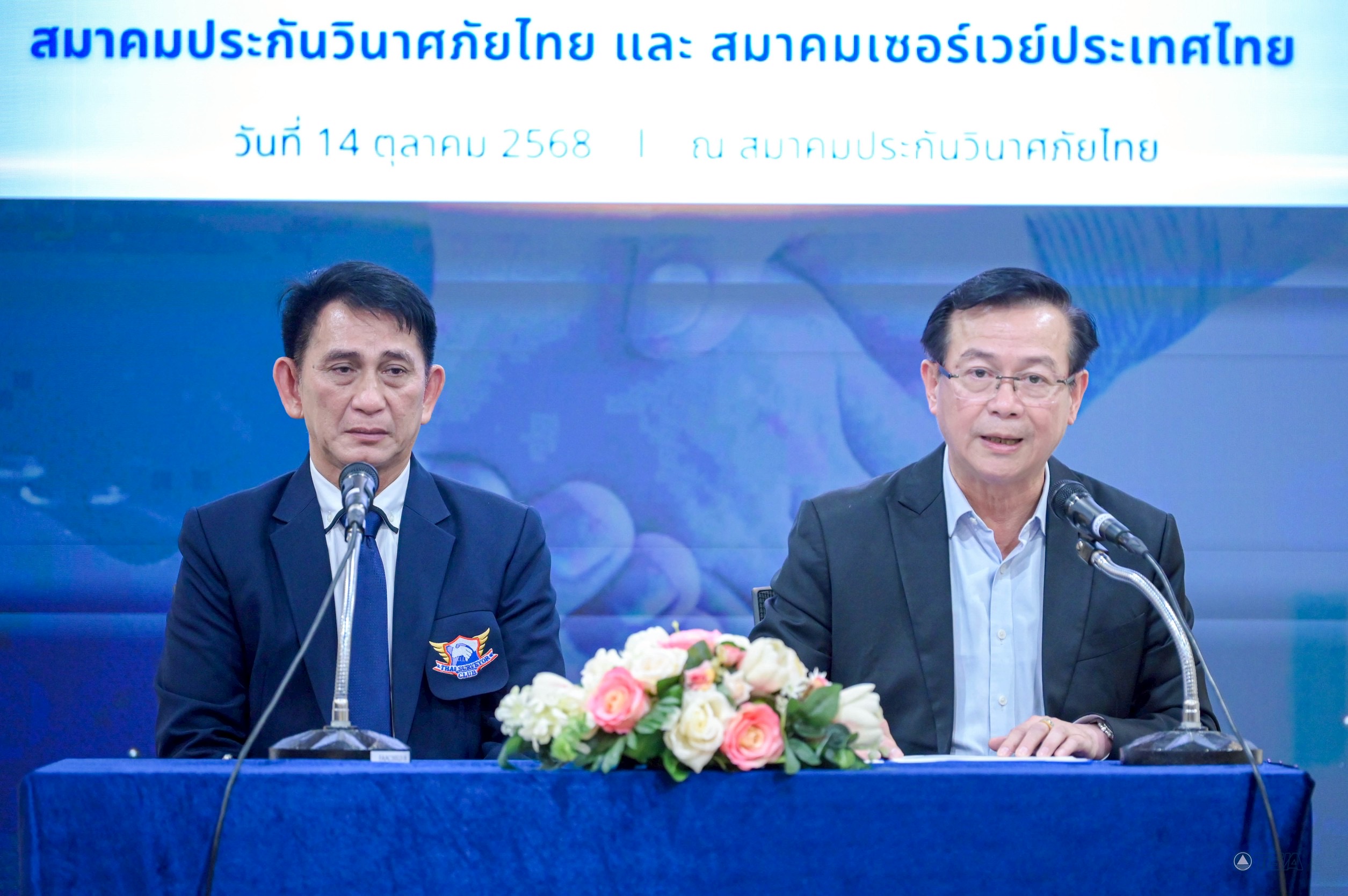 เมื่อวันที่ 14 ตุลาคม 2568 สมาคมประกันวินาศภัยไทย และสมาคมเซอร์เวย์ประเทศไทย จัดพิธีลงนามบันทึกข้อตกลง (MOU) เรื่อง “ความร่วมมือเพื่อกำหนดรูปแบบมาตรฐานการปฏิบัติงานของเจ้าหน้าที่สำรวจภัยของบริษัทสำรวจภัย” เพื่อร่วมกันยกระดับคุณภาพและศักยภาพของเจ้าหน้าที่สำรวจภัยในประเทศไทย ให้สอดคล้องกับมาตรฐานวิชาชีพ และตอบสนองต่อความต้องการของระบบประกันภัยรถยนต์ในปัจจุบันอย่าง มีประสิทธิภาพ โดยได้รับเกียรติจาก ดร.สมพร สืบถวิลกุล นายกสมาคมประกันวินาศภัยไทย และนายชำนาญ ชาติพจน์ นายกสมาคมเซอร์เวย์ประเทศไทย ร่วมลงนามในฐานะผู้แทนของทั้งสองสมาคม โดยมีนายเสรี กวินรัชตโรจน์ ประธานคณะกรรมการประกันภัยยานยนต์ สมาคมประกันวินาศภัยไทย และนายจำนงค์ สิงหา ประธานชมรมผู้ประกอบวิชาชีพตรวจสอบความเสียหาย ร่วมลงนามเป็นสักขีพยาน ณ สมาคมประกันวินาศภัยไทย