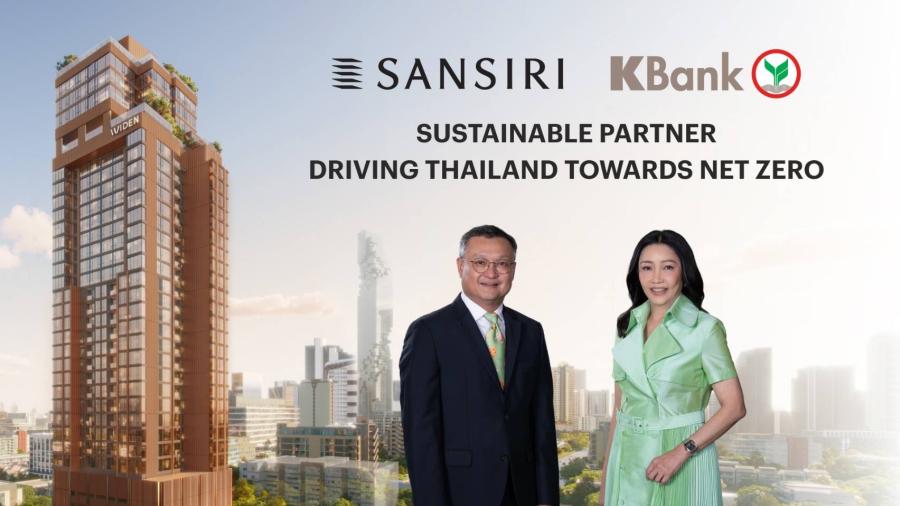 นางสาวขัตติยา อินทรวิชัย ประธานเจ้าหน้าที่บริหาร ธนาคารกสิกรไทย และนายอุทัย อุทัยแสงสุข กรรมการผู้จัดการใหญ่ บริษัท แสนสิริ จำกัด (มหาชน) แถลงความร่วมมือการสนับสนุนสินเชื่อเพื่อสิ่งแวดล้อม หรือกรีนโลนประเภท Pre-Finance มูลค่า 4,000 ล้านบาทสำหรับ 3 โครงการต้นแบบคอนโดมิเนียมมาตรฐานใหม่ ซึ่งแสนสิริเป็นบริษัทแรกของธนาคารกสิกรไทยที่ใช้เกณฑ์การประเมินสินเชื่อที่เข้มข้นสอดคล้องตาม Thailand Taxonomy และผ่านหลักเกณฑ์การประเมินสินเชื่อเพื่อสิ่งแวดล้อมหรือกรีนโลนจากธนาคารกสิกรไทย สู่ก้าวสำคัญที่สะท้อนถึงบทบาทBank of Sustainability ในการผลักดันให้คู่ค้ามุ่งดำเนินธุรกิจเพื่อความยั่งยืน ณ ธนาคารกสิกรไทย สำนักงานใหญ่ อาคารพหลโยธิน เมื่อเร็วๆ นี้