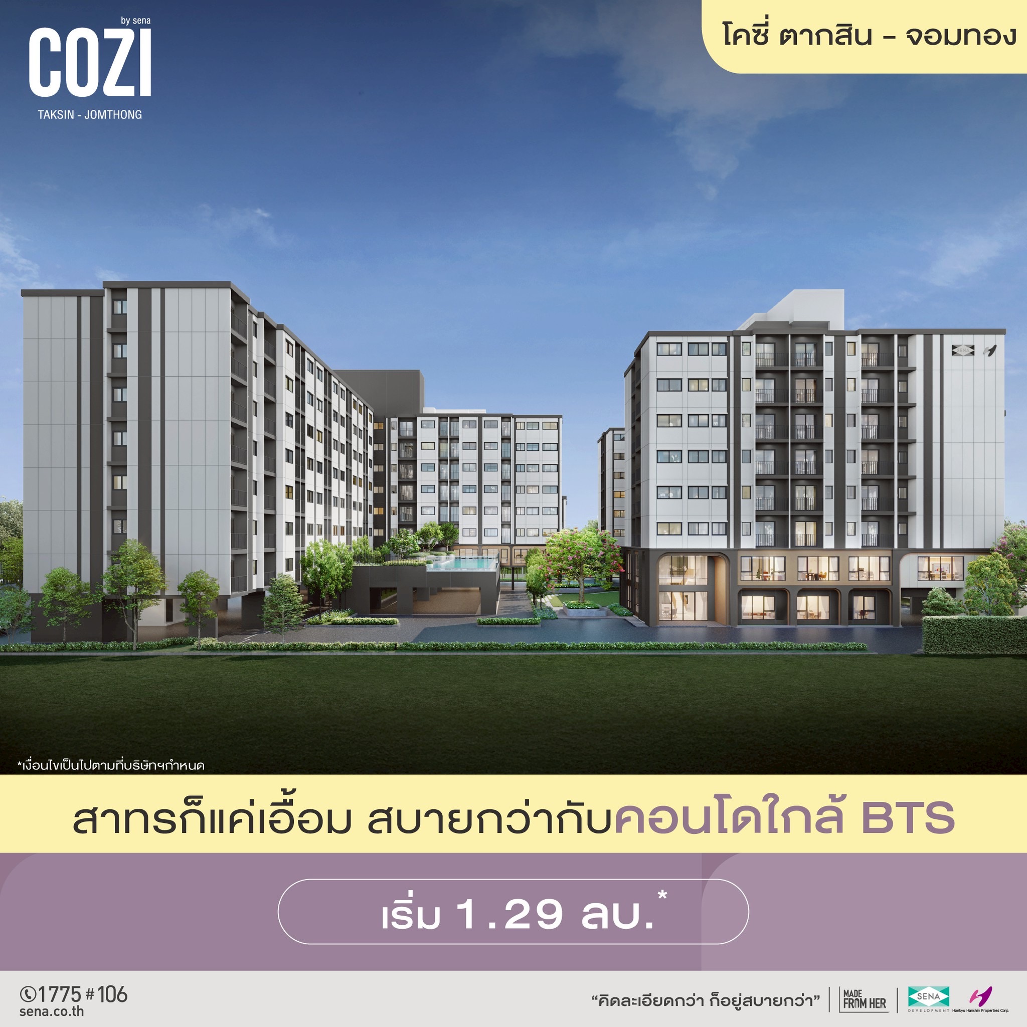 ชีวิตสบาย ง่ายขึ้น ที่ “โคซี่ ตากสิน – จอมทอง” คอนโดใหม่จากเสนา ใกล้ รถไฟฟ้า 2 สาย ราคาเริ่มต้น 1.29 ล้าน เปิดจอง 1–2 พ.ย.นี้!*