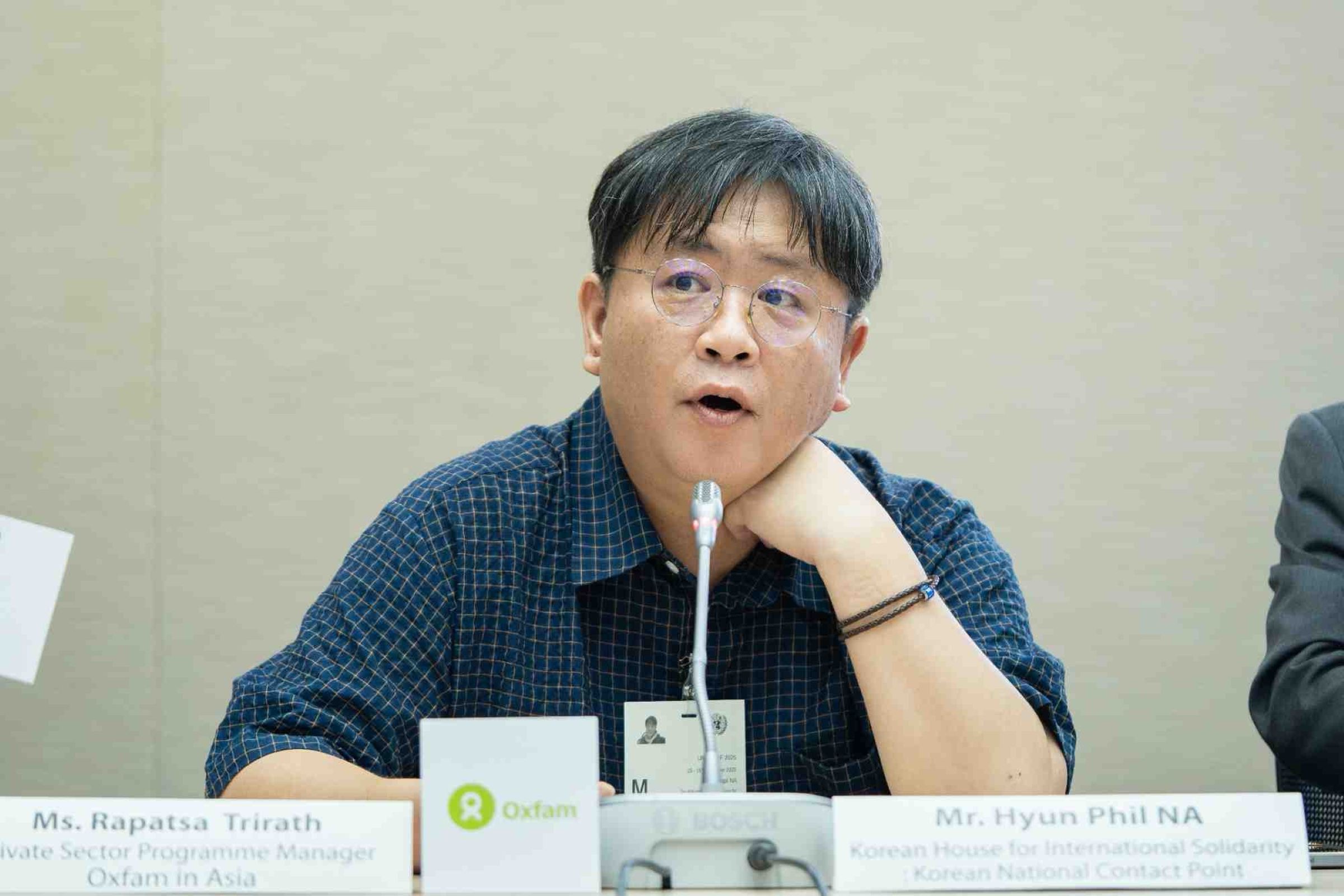 ฮย็อนพิล นา กรรมการบริหาร Korean House for International Solidarity (KHIS) แบ่งปันบทเรียนจากประสบการณ์ตรงของเกาหลีกับกลไกศูนย์ติดต่อประสานงานแห่งชาติ (National Contact Point – NCP) ของ