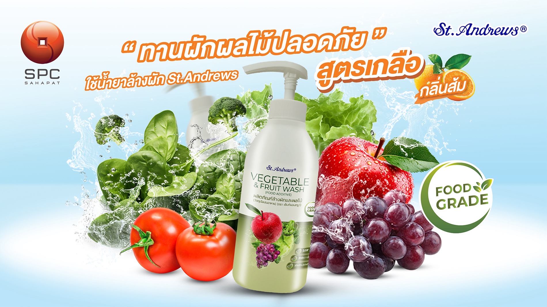 ท่ามกลางกระแสความตื่นตัวด้านสุขภาพและความกังวลเรื่องสารเคมีและยาฆ่าแมลงที่อาจปนเปื้อนในผักผลไม้ที่บริโภคในชีวิตประจำวัน บริษัท สหพัฒนพิบูล จำกัด (มหาชน) หรือ SPC ผู้จัดจำหน่ายสินค้าอุปโภคบริโภคชั้นนำของไทยตอกย้ำความใส่ใจในสุขภาพของผู้บริโภค พร้อมมอบทางเลือกเพื่อสุขภาพที่ดีกว่า ด้วยการเปิดตัวผลิตภัณฑ์ใหม่ “St.Andrews น้ำยาล้างผักและผลไม้ สูตรเกลือ Food Grade” ผู้ช่วยสำคัญสำหรับทุกครอบครัวในการล้างผักผลไม้ให้สะอาด ปลอดสารเคมี มั่นใจทุกคำที่รับประทาน