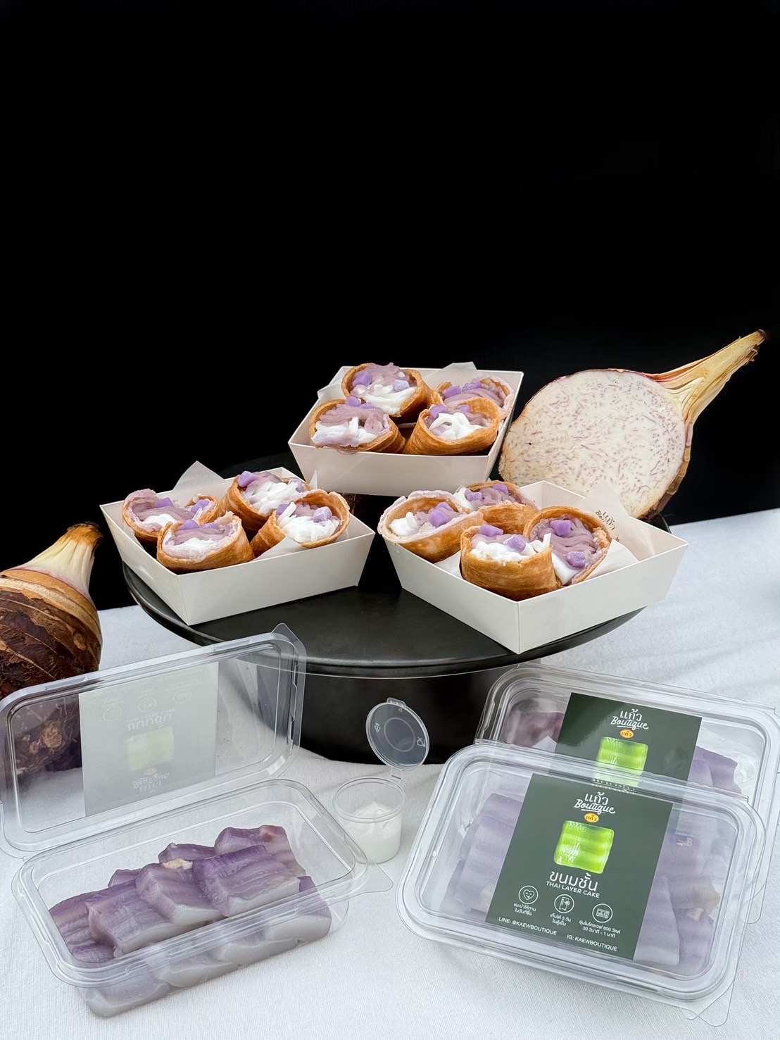 ชมการสาธิตการทำขนมเมนู “Taro Frenzy” จากเชฟอย่างใกล้ชิด พร้อมร่วมลิ้มรสขนมคอลเลกชัน “เผือกหอม” สุดพิเศษจาก Kaew Boutique โดยนำวัตถุดิบไทยอย่าง “เผือกหอม” มารังสรรค์เป็นหลากหลายเมนูขนมสุดประณีต อาทิ ขนมชั้นเผือก ทองม้วนสดกรอบเผือก และเค้กโรลเผือก