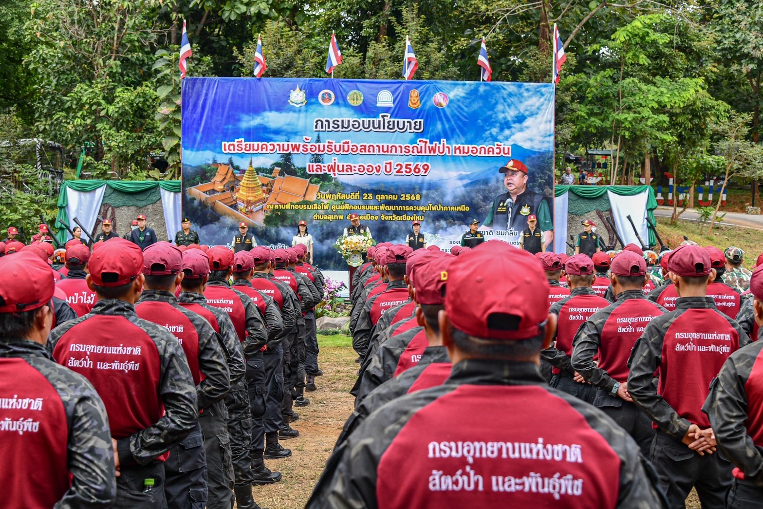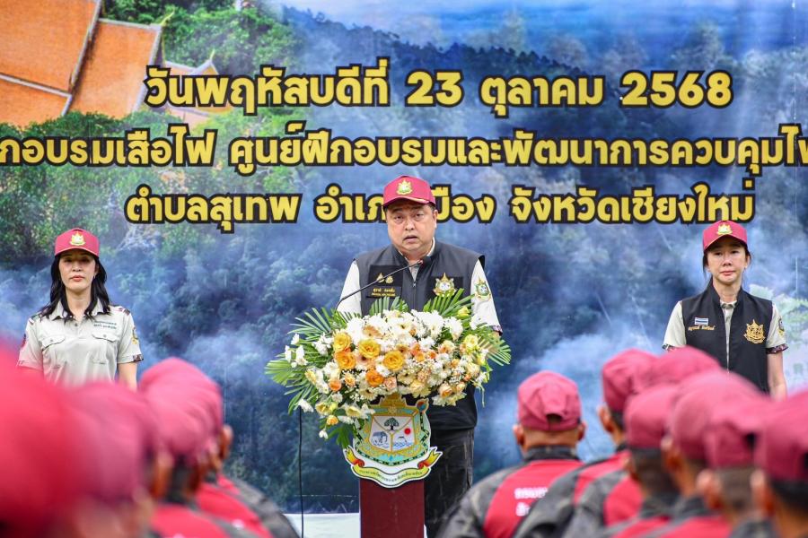 วันนี้ (23 ตุลาคม 2568) เวลา 15.00 น. นายสุชาติ ชมกลิ่น รองนายกรัฐมนตรีและรัฐมนตรีว่าการกระทรวงทรัพยากรธรรมชาติและสิ่งแวดล้อม เป็นประธานการประชุมมอบนโยบายและรับฟังความคิดเห็น เพื่อเตรียมความพร้อมในการป้องกันและแก้ไขปัญหาไฟป่า หมอกควัน และฝุ่นละอองขนาดเล็ก (PM2.5) ประจำปี 2569 ณ ศูนย์ปฏิบัติการไฟป่าเชียงใหม่ ตำบลสุเทพ อำเภอเมืองเชียงใหม่ จังหวัดเชียงใหม่ และผ่านระบบ Video Conference เชื่อมต่อไปยัง 20 จังหวัดเฝ้าระวัง และหน่วยงานในสังกัดกระทรวงฯ ทั่วประเทศพร้อมเปิด “ศูนย์ปฏิบัติการไฟป่าและหมอกควันภาคเหนือ” อย่างเป็นทางการ โดยมี ดร.ชญานันท์ ภักดีจิตต์ ปลัดกระทรวงทรัพยากรธรรมชาติและสิ่งแวดล้อม นายทศพล เผื่อนอุดม ผู้ว่าราชการจังหวัดเชียงใหม่ และผู้บริหารหน่วยงานในสังกัดกระทรวงฯ ที่เกี่ยวข้อง ตลอดจนผู้แทนหน่วยงานภาครัฐ ภาคเอกชน องค์กรปกครองส่วนท้องถิ่น และภาคประชาชน เข้าร่วมประชุม และร่วมเสนอข้อคิดเห็น