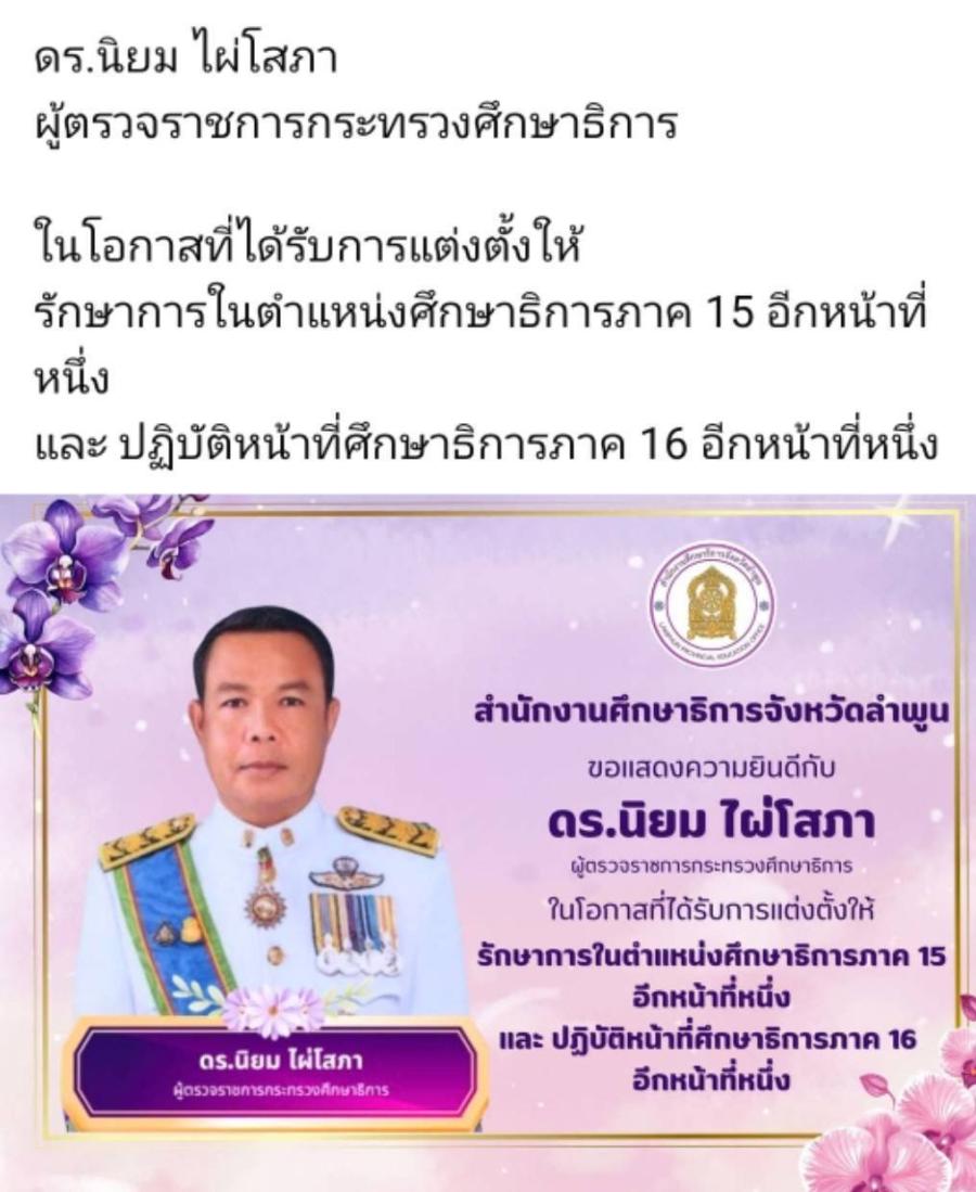 เนื่องในโอกาสที่ได้รับการแต่งตั้งตำแหน่งใหม่ในกระทรวงศึกษาธิการ