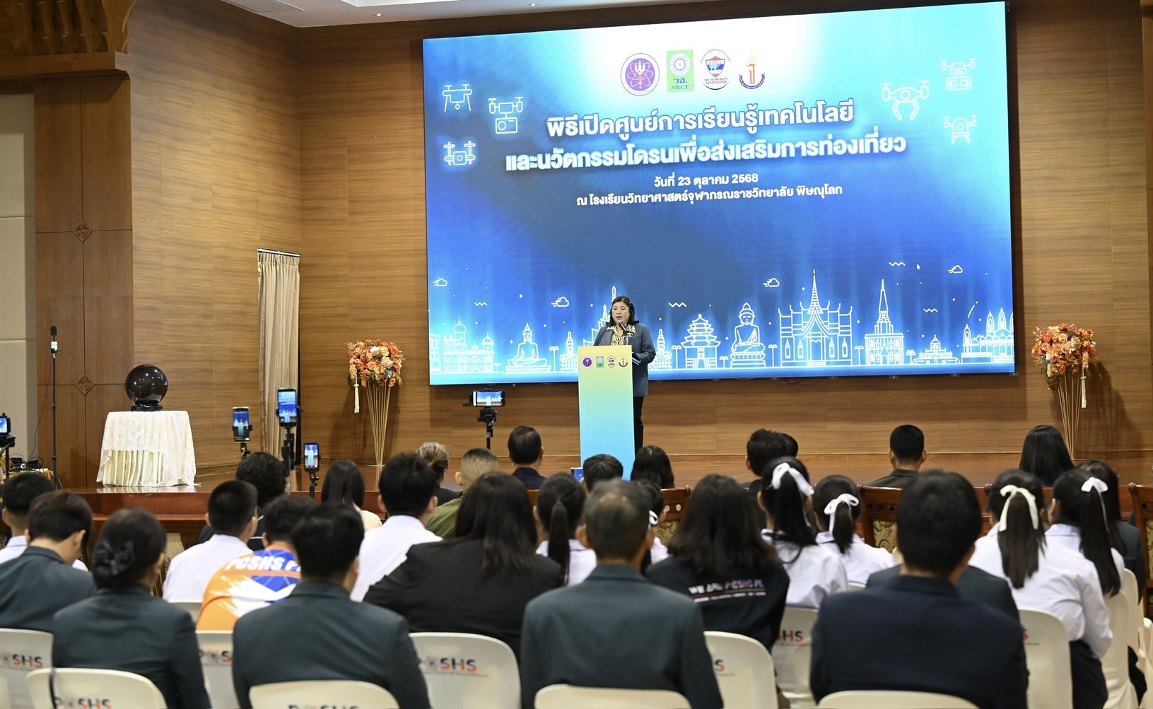 นางสาวจิรวรรณ สุรเสียง รองผู้อำนวยการสำนักงานเขตพื้นที่การศึกษามัธยมศึกษาพิษณุโลก อุตรดิตถ์ กล่าวว่า ในนามของเขตพื้นที่การศึกษามัธยมศึกษาพิษณุโลก อุตรดิตถ์ ขอขอบพระคุณ วช. ที่ให้การสนับสนุนการจัดตั้งศูนย์การเรียนรู้เทคโนโลยีและนวัตกรรมโดรนเพื่อส่งเสริมการท่องเที่ยว ซึ่งเป็นโครงการที่มีคุณค่าอย่างยิ่งต่อการพัฒนาเยาวชนและชุมชนท้องถิ่น โรงเรียนรู้สึกเป็นเกียรติที่ได้รับโอกาสให้เป็นส่วนหนึ่งในการขับเคลื่อนงานวิจัยและนวัตกรรมสู่การปฏิบัติจริง ศูนย์แห่งนี้จะเป็นพื้นที่เรียนรู้สำคัญในการพัฒนาทักษะด้านวิทยาศาสตร์ เทคโนโลยี และนวัตกรรมของนักเรียน รวมทั้งเป็นเวทีสร้างสรรค์ผลงานที่ตอบโจทย์การพัฒนาพื้นที่อย่างยั่งยืน