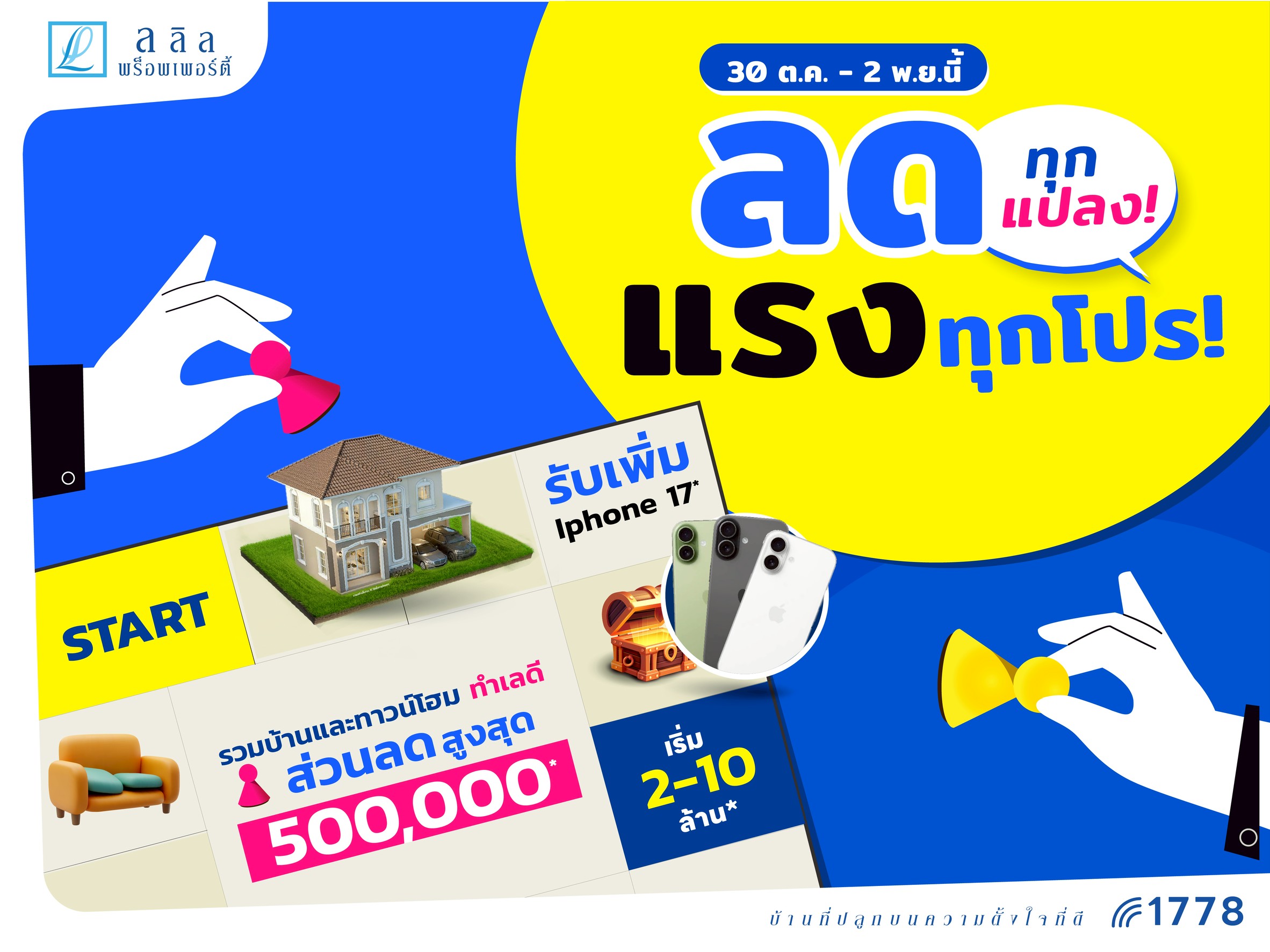 สำหรับผู้ที่กำลังมองหาบ้านคุณภาพ ลลิล พร็อพเพอร์ตี้ พร้อมมอบข้อเสนอพิเศษภายในงาน “มหกรรมบ้านและคอนโด ครั้งที่ 48” ระหว่าง 30 ตุลาคม - 2 พฤศจิกายน 2568 ณ ศูนย์การประชุมแห่งชาติสิริกิติ์ ด้วยส่วนลดสูงสุด 500,000 บาท และรับเพิ่ม iPhone 17 มูลค่า 29,900 บาท สำหรับผู้ที่จองภายในงาน