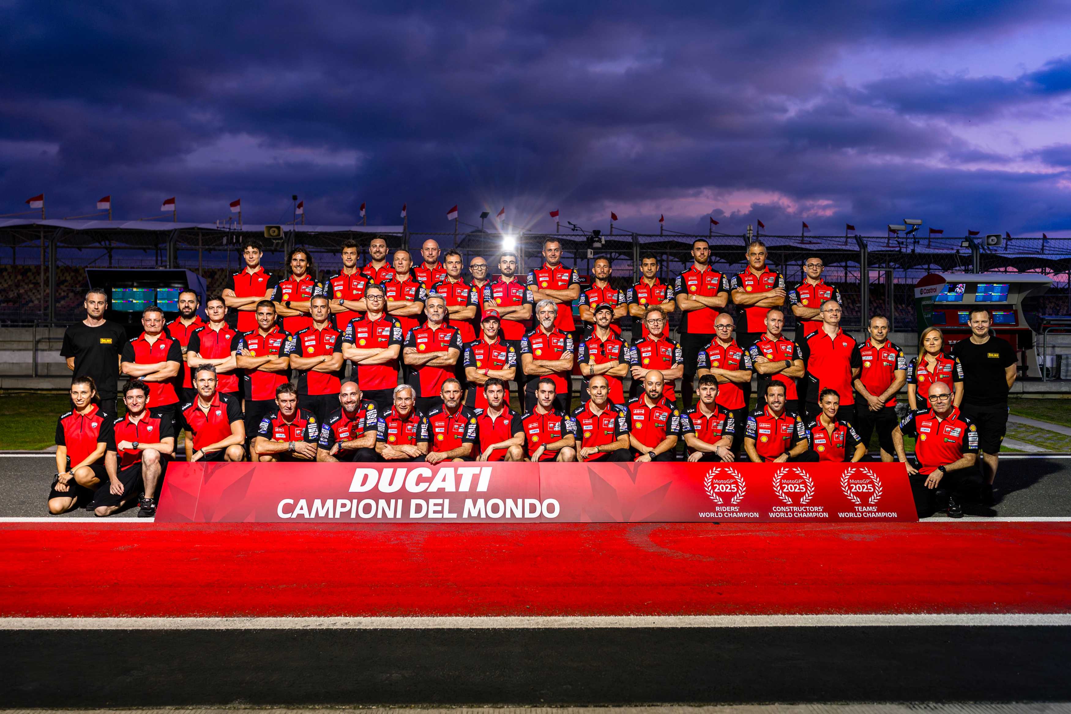 กรุงเทพฯ ประเทศไทย – เมื่อวันเสาร์ที่ 4 ตุลาคมที่ผ่านมา ทีมดูคาติ เลอโนโว ได้สร้างประวัติศาสตร์ครั้งใหม่ด้วยการคว้าแชมป์โลกประเภททีมจากการแข่งขันโมโตจีพี ประจำปี 2025 ซึ่งการคว้าแชมป์ดังกล่าวนี้ถือเป็นการได้แชมป์แบบ “ทริปเปิลคราวน์” ต่อเนื่องจากที่ทีมดูคาติ คอร์เซ่ (Ducati Corse) ได้ตำแหน่งแชมป์ผู้ผลิตยอดเยี่ยมจากสนามที่กรุงบาร์เซโลนา และจากที่นักแข่ง มาร์ก มาร์เกซ (Marc Márquez) คว้าแชมป์นักแข่งจากสนามโมเตกิ ซึ่งความสำเร็จในครั้งนี้เกิดจากความร่วมมือระหว่าง ดูคาติ และ เลอโนโว ที่นำนวัตกรรม และเทคโนโลยีมาใช้ในการขับเคลื่อนทีมจนเกิดเป็นความสำเร็จ และเป็นการสร้างประวัติศาสต์แชมป์ทริปเปิลคราวน์อีกครั้ง หลังจากเคยคว้าแชมป์เมื่อปี 2022 ที่ ฟรานเชสโก บาญายา