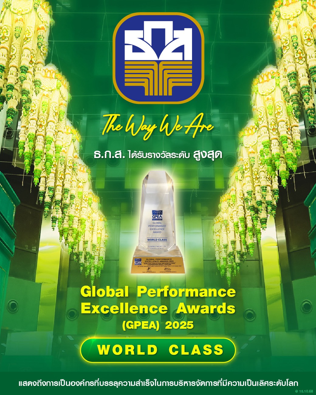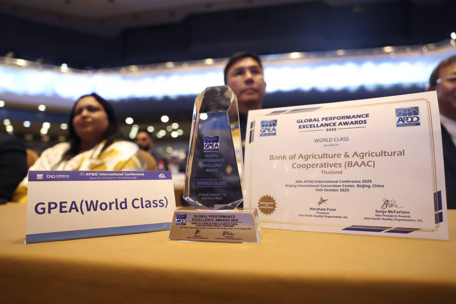 ธ.ก.ส. คว้ารางวัลสุดยอดองค์กรแห่งความเป็นเลิศระดับโลก Global Performance Excellence Award 2025 ระดับสูงสุด World Class
