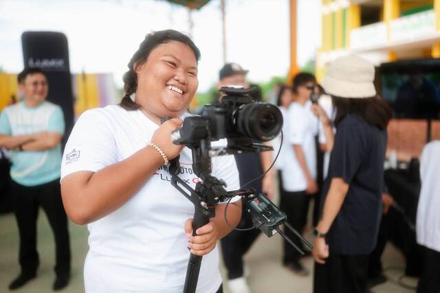 น้องอิ๋ว – เด็กหญิงอรวรา ข่าขอม นักเรียนชั้น ม.2 โรงเรียนบ้านโนนสวรรค์ จังหวัดหนองคายเล่าว่า วันนี้หนูได้เรียนรู้อะไรใหม่ ๆ เยอะมากเลยค่ะ โดยเฉพาะการเล่าเรื่องและการทำคอนเทนต์ให้น่าสนใจ ไม่เคยคิดเลยว่าการถ่ายคลิปหรือการนำเสนอผ่านกล้องจะสนุกขนาดนี้ หลังจากนี้อยากลองเอาสิ่งที่ได้เรียนรู้ไปต่อยอดทำคลิปขายของทางออนไลน์ เช่น หัดไลฟ์ขายของแบบปักตะกร้าใน TikTok เพื่อฝึกพูด ฝึกนำเสนอสินค้า และสร้างรายได้เสริมให้ครอบครัว หนูดีใจและภูมิใจมากที่พานาโซนิคมีกิจกรรมแบบนี้มาให้พวกเราได้เรียนรู้และร่วมสนุก เพราะมันช่วยเปิดโลกและให้โอกาสเด็กต่างจังหวัดอย่างหนูได้ลองสิ่งใหม่ ที่ไม่เคยทำมาก่อน และอยากให้มีกิจกรรมแบบนี้ต่อไปเพื่อให้เพื่อนโรงเรียนอื่นได้มีโอกาสเรียนรู้เหมือนพวกหนูค่ะ