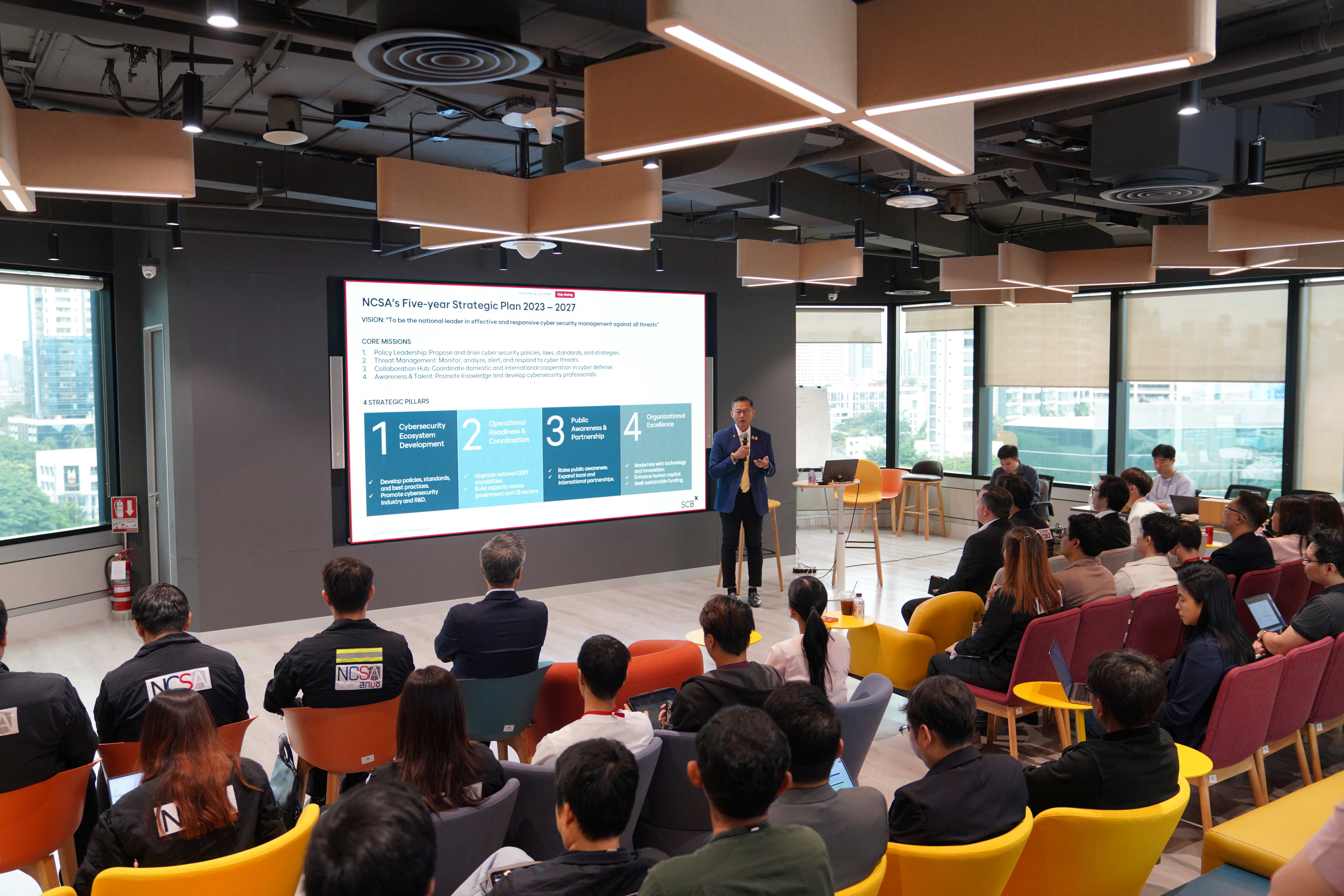 พลอากาศตรี อมร ชมเชย เลขาธิการคณะกรรมการการรักษาความมั่นคงปลอดภัยไซเบอร์แห่งชาติ (สกมช.) กล่าวถึงบทบาทในการขับเคลื่อนความมั่นคงไซเบอร์ของประเทศว่า “สกมช. ได้วางรากฐานด้านกฎหมายและนโยบายเพื่อรองรับการเปลี่ยนแปลงของโลกดิจิทัล ผ่านพระราชบัญญัติสำคัญ 3 ฉบับ ได้แก่ พ.ร.บ. คอมพิวเตอร์, พ.ร.บ. ความมั่นคงไซเบอร์ และ พ.ร.บ. คุ้มครองข้อมูลส่วนบุคคล (PDPA) โดยมีเป้าหมายเพื่อสร้างความสงบสุขในโลกไซเบอร์ และส่งเสริมให้ประชาชนใช้บริการดิจิทัลอย่างปลอดภัย (Safe, Secure, Trusted) นอกจากนี้ สกมช. ยังมุ่งเน้นการสร้าง Ecosystem ที่ยั่งยืน ผ่านการพัฒนามาตรฐานวิชาชีพด้านไซเบอร์ร่วมกับกรมพัฒนาฝีมือแรงงาน การผลักดันให้สถานประกอบการมีเจ้าหน้าที่ดูแลความปลอดภัยไซเบอร์ และการส่งเสริมการเรียนรู้ตั้งแต่ระดับอาชีวศึกษา เพื่อให้สามารถรับมือกับภัยไซเบอร์ได้ตั้งแต่ระดับพื้นฐาน รวมถึงร่วมมือกับหน่วยงานภาคเอกชนอย่าง SCBX ในครั้งนี้จะช่วยยกระดับความสามารถด้านไซเบอร์ของบุคลากรภาครัฐและเอกชน เพื่อเพิ่มความแข็งแกร่งของระบบป้องกันภัยไซเบอร์ระดับประเทศ และสนับสนุนเป้าหมายการพัฒนาเศรษฐกิจและสังคมอย่างยั่งยืนต่อไป”