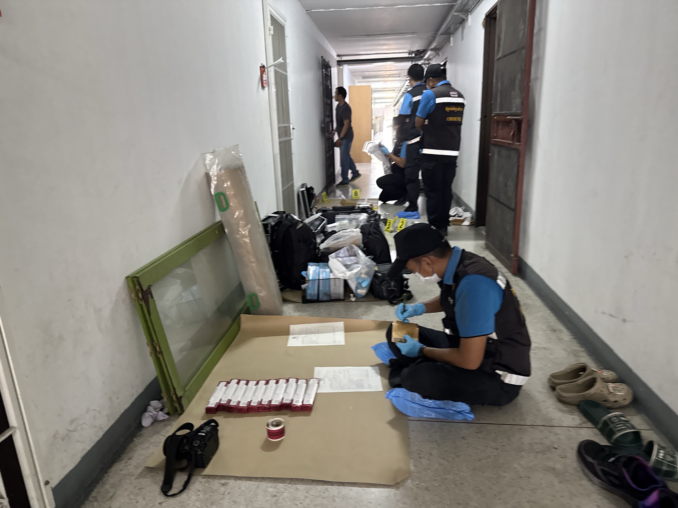 นำโดย พ.ต.อ.พูนสุข เตชะประเสริฐพร ผกก.สส.1 บก.สส.ภ.1 พร้อมกับเจ้าพนักงานตำรวจ บก.สส.ภ.1, เจ้าพนักงานตำรวจพิสูจน์หลักฐาน ได้นำหมายค้นศาลจังหวัดนนทบุรี ที่ ค.903/2568 ลงวันที่ 24 ตุลาคม 2568 เข้าทำการตรวจค้นห้องเลขที่ 99/134 สุปรีดา คอนโด ชั้น 4 ต.บางรักใหญ่ อ.บางบัวทอง จ.นนทบุรี ด้วยเจ้าพนักงานตำรวจ บก.สส.ภ.1 ได้รับแจ้งว่าหมายเลขโทรศัพท์ 0947305453 โทรมาหาเจ้าพนักงานตำรวจ โดยได้มีพฤติการณ์เป็นแก๊งคอลเซ็นเตอร์ หลอกลวงว่าเป็นเจ้าหน้าที่ของผู้ให้บริการเครือข่ายโทรศัพท์ และแจ้งว่าผู้รับสายได้เปิดเบอร์โทรศัพท์ในพื้นที่ หาดใหญ่ ซึ่งเบอร์ดังกล่าวเกี่ยวข้องกับการกระทำผิด