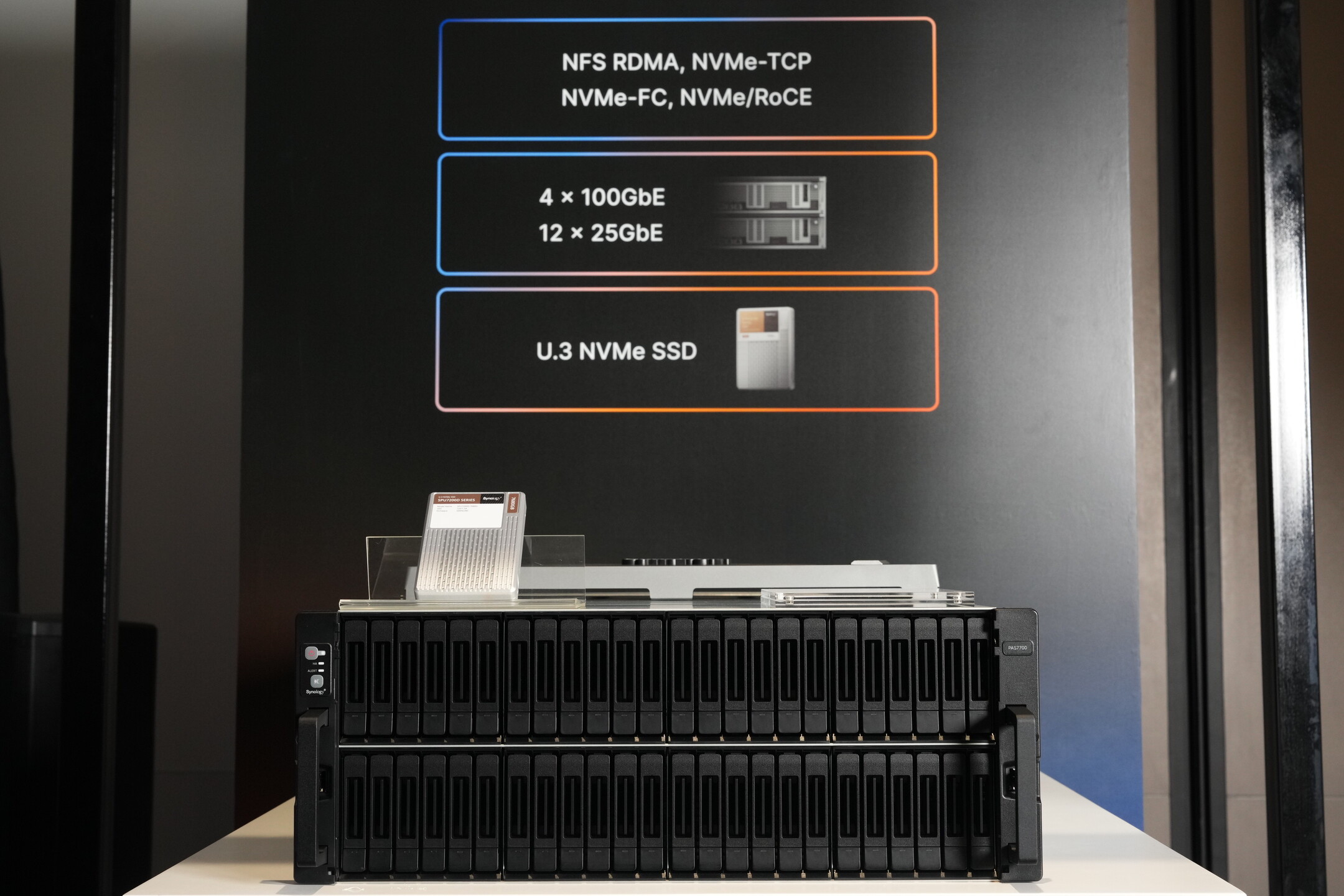 นอกจากนี้ Synology ยังเปิดตัว PAS7700 ระบบจัดเก็บข้อมูลสำหรับองค์กรแบบ All-NVMe รุ่นแรกของบริษัท มอบประสิทธิภาพสูงสุดด้วยสถาปัตยกรรม NVMe ครบวงจร สามารถทำงานได้ถึง 2 ล้าน IOPS และ 30 GB/s throughput โดยมีความหน่วงต่ำกว่า 1 มิลลิวินาที Active-Active Architecture ช่วยให้ระบบพร้อมใช้งานอย่างต่อเนื่อง มาพร้อมกับความสามารถในการ เข้ารหัส (Encryption) ที่แข็งแกร่ง และ ประสิทธิภาพระดับองค์กรทำให้ PAS7700 เป็นทางเลือกที่สมบูรณ์แบบ เหมาะสำหรับงานสำคัญระดับ Mission Critical