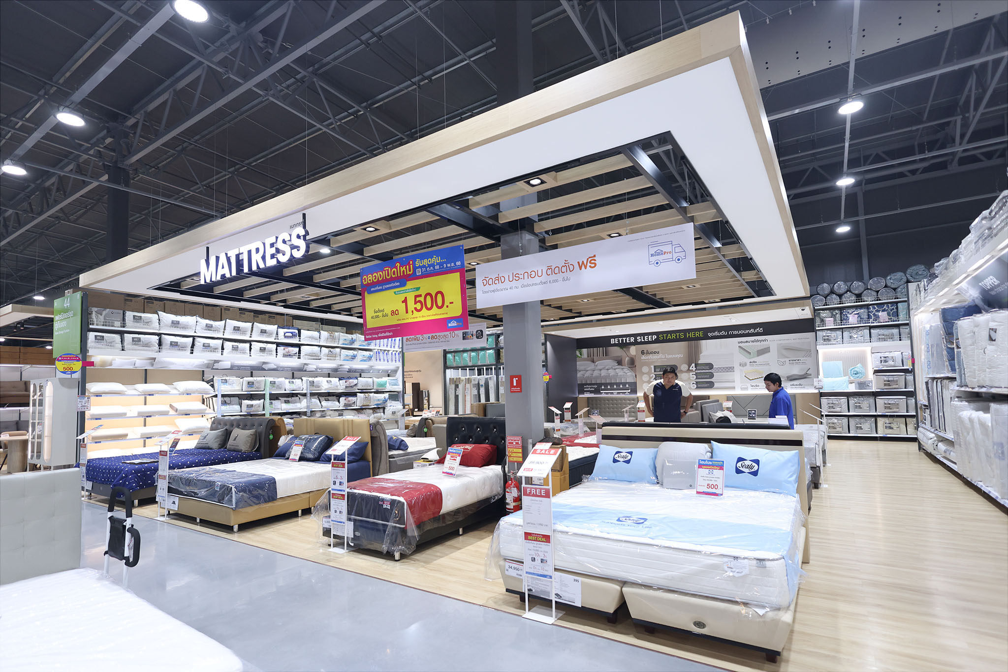 โฮมโปร แหลมฉบัง จึงถูกออกแบบภายใต้คอนเซ็ปต์ “Smart Living & One Stop Shopping”เพื่อรองรับทั้งลูกค้ากลุ่มที่พักอยู่อาศัยและกลุ่มธุรกิจให้ครบในที่เดียว โดยจัดโซนสินค้าและบริการให้ตอบโจทย์ทุกมิติของการใช้ชีวิตจริงตั้งแต่โซนเฟอร์นิเจอร์ครบชุด และเทรนด์รีโนเวทบ้านหรือห้องเช่าที่ให้บริการโดยทีมช่างโฮมโปร-มือโปรประจำบ้านคุณ ไปจนถึงโซนครัวครบวงจร ที่รวมเครื่องครัวขนาดเล็กไปจนถึงระบบครัวครบวงจรสำหรับร้านอาหาร–คาเฟ่ และมุมอุปกรณ์งานช่างสำหรับผู้ประกอบการหรือผู้รับเหมารายย่อย ขณะเดียวกันในโซนเครื่องใช้ไฟฟ้าก็มาพร้อมสินค้าประหยัดพลังงาน พร้อมคำแนะนำจากทีมที่ปรึกษาช่วยออกแบบห้องและเลือกสเปกได้อย่างตรงความต้องการ พร้อมโซนไลฟ์สไตล์จากร้านอาหารและเครื่องดื่มชั้นนำ ให้ลูกค้าได้พักผ่อนและใช้เวลาคุณภาพระหว่างเลือกซื้อสินค้า ทั้งหมดรวมอยู่บนพื้นที่ขายราว 7,592 ตร.ม. จากงบลงทุนกว่า500 ล้านบาท เพื่อสร้างสรรค์การใช้ชีวิตและการอยู่อาศัยที่ดีกว่า ภายใต้วิสัยทัศน์ Better Livingได้อย่างลงตัว