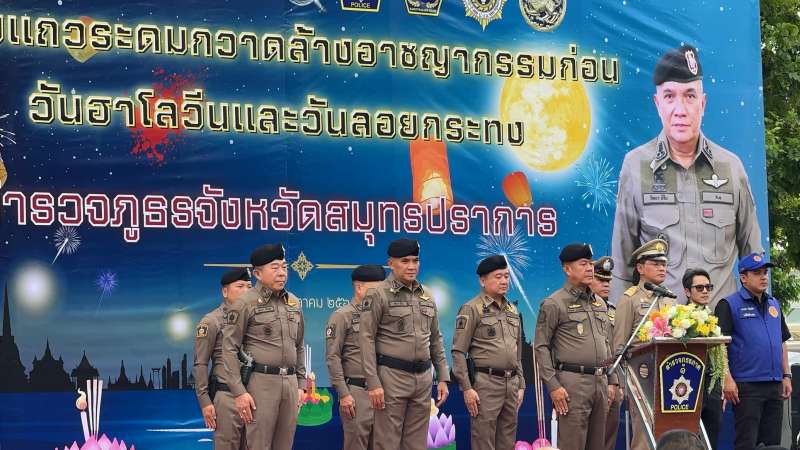 ผช.ผบ.ตร. ร่วมกับผู้ว่าฯสมุทรปราการ ปล่อยแถวกำลังเจ้าหน้าที่ตำวรวจ สังกัด ภ.จว.และฝ่ายปกครอง กวาดล้างอาชญากรรมช่วงวันฮาโลวีน-ลอยกระทง