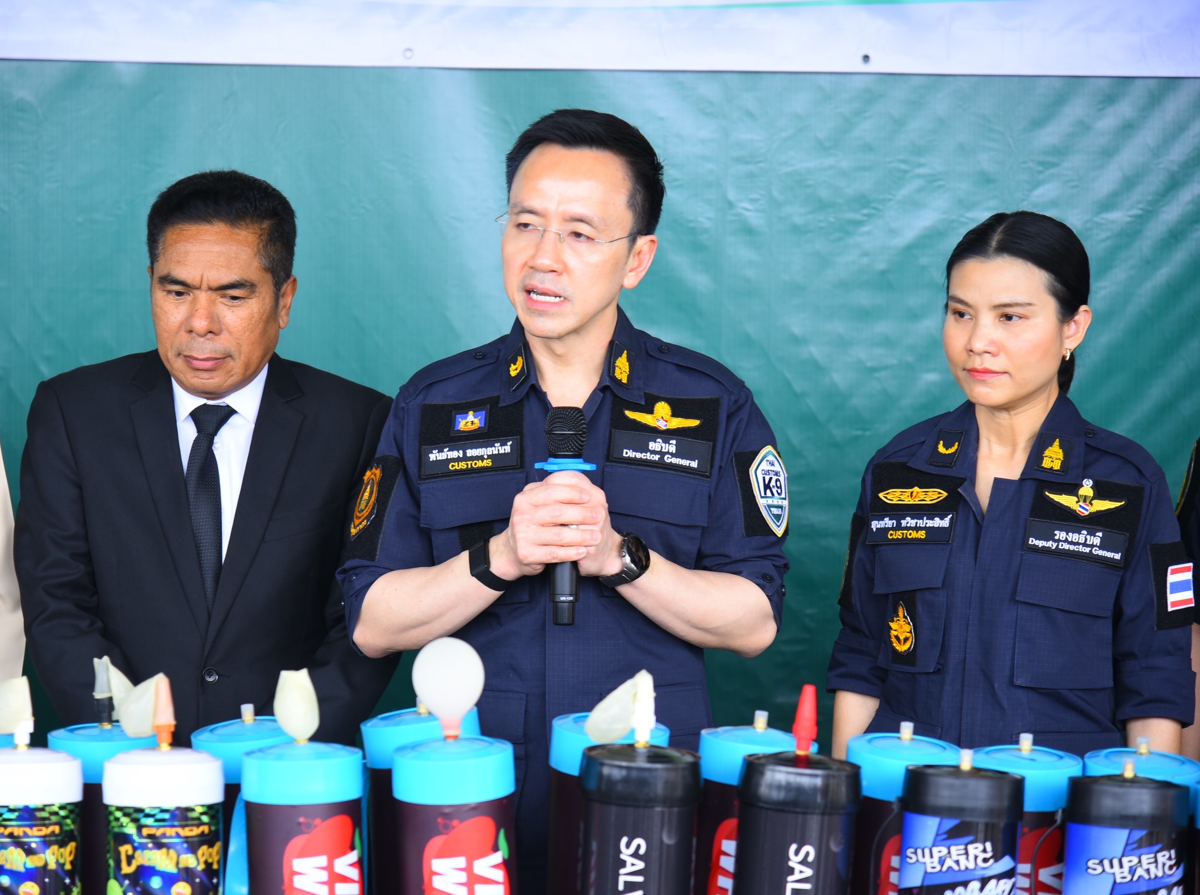 กรมศุลกากรเพิ่มความเข้มงวดตรวจสอบสินค้านำเข้าผิดกฎหมาย จับกุมก๊าซไนตรัสออกไซด์ สินค้าละเมิดเครื่องหมายการค้าและเฮโรอีน มูลค่ากว่า 159 ล้านบาท