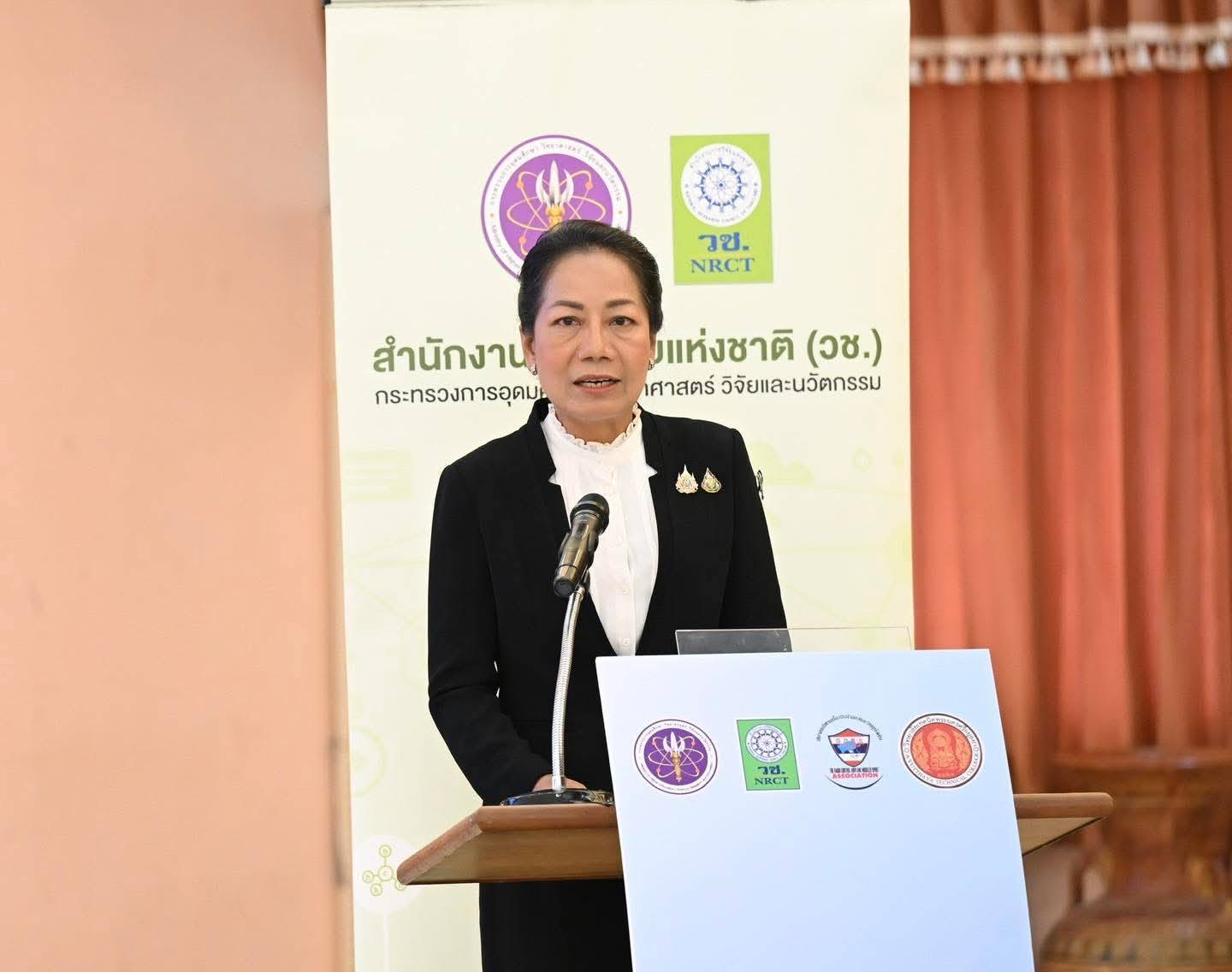 ดร.วิภารัตน์ ดีอ่อง ผู้อำนวยการ วช. กล่าวว่า วช.ให้ความสำคัญกับนโยบายของ อว. ในการนำเทคโนโลยีมาช่วยยกระดับงานในพื้นที่ ซึ่งขณะนี้เทคโนโลยีโดรน มีบทบาทอย่างมาก ทั้งในด้านเกษตรกรรม การท่องเที่ยว การจัดการทรัพยากรธรรมชาติ การศึกษา การคมนาคม และความมั่นคง เทคโนโลยีปัญญาประดิษฐ์เข้ามามีส่วนสำคัญในการยกระดับคุณภาพชีวิตและขับเคลื่อนเศรษฐกิจฐานนวัตกรรมของประเทศ ศูนย์การเรียนรู้เทคโนโลยีและนวัตกรรมโดรนแห่งนี้ ถือเป็นอีกก้าวสำคัญในการพัฒนาศักยภาพคนไทยให้พร้อมรับการเปลี่ยนแปลงของโลกยุคดิจิทัล โดยเฉพาะการนำเทคโนโลยี “โดรน” ซึ่งเป็นนวัตกรรมที่มีบทบาทสำคัญทั้งในด้าน การเกษตรอัจฉริยะ (Smart Farming) และ การท่องเที่ยวเชิงสร้างสรรค์ (Creative Tourism) มาประยุกต์ใช้ให้เกิดประโยชน์สูงสุดต่อพื้นที่และชุมชน โดยศูนย์แห่งนี้จะเป็นตัวอย่างที่ดีของการเชื่อมโยงระหว่างสถาบันการศึกษา ภาควิจัย และชุมชนท้องถิ่น เพื่อเป็นศูนย์กลางในการพัฒนาองค์ความรู้ด้านเทคโนโลยีโดรน และต่อยอดการประยุกต์ใช้นวัตกรรมเพื่อพัฒนาประเทศ