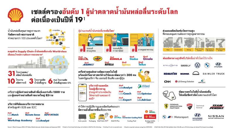 เชลล์ครองแชมป์อันดับ 1 ผู้จำหน่ายน้ำมันหล่อลื่นระดับโลกต่อเนื่องเป็นปีที่ 19